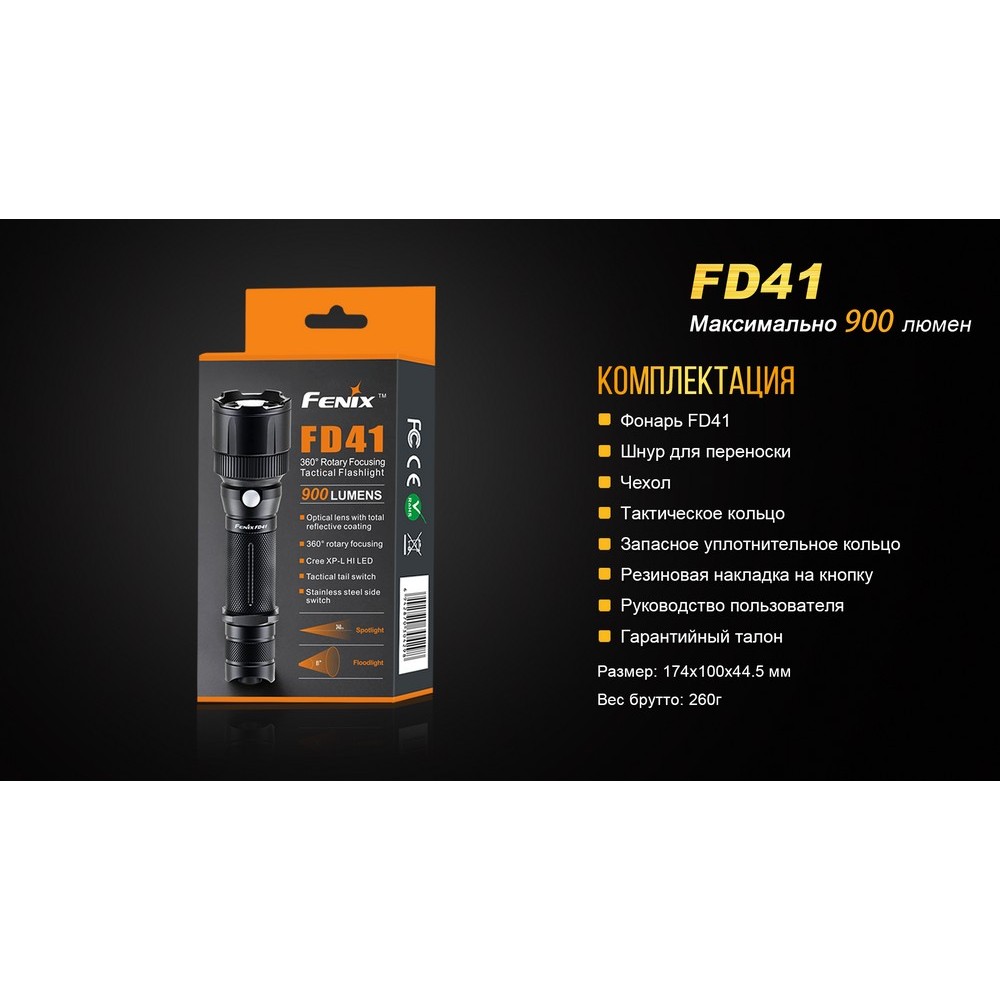 Гарантия: При покупке фонаря модели Fenix FD41 вы получаете гарантию его качества, которая действительна в течение пяти лет.