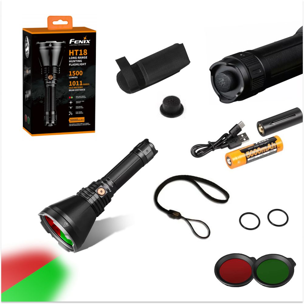 Комплектация | Фонарь Fenix HT18, аккумулятор, зарядочный кабель USB Type-C, переходник ALF-18, красный фильтр, зеленый фильтр, чехол с регулировкой длины, ремешок на руку, запасное кольцо, запасная резиновая накладка на кнопку, руководство по эксплуатации, гарантийный талон. | ||||||