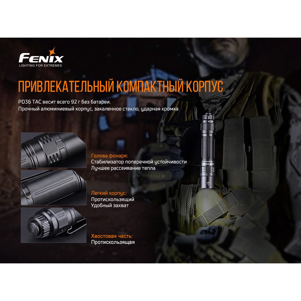 Описание фонаря Fenix PD36 TAC (LUMINUS SST70, ANSI 3000 лм, 21700) :