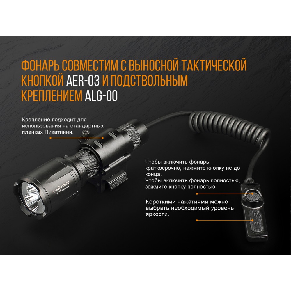 Поскольку модель TK25 Red создана, в первую очередь, для охотников, она совместима с фирменными креплениями для оружия и выносной кнопки управления. Но применение этого фонаря очень обширно. В частности, он совместим и с велосипедными креплениями, а также разными фильтрами и рассеивателями.