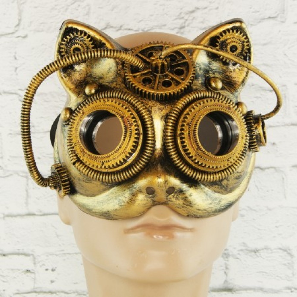 Маска винтажная стимпанк Кошка (золото) (KMP-8789)