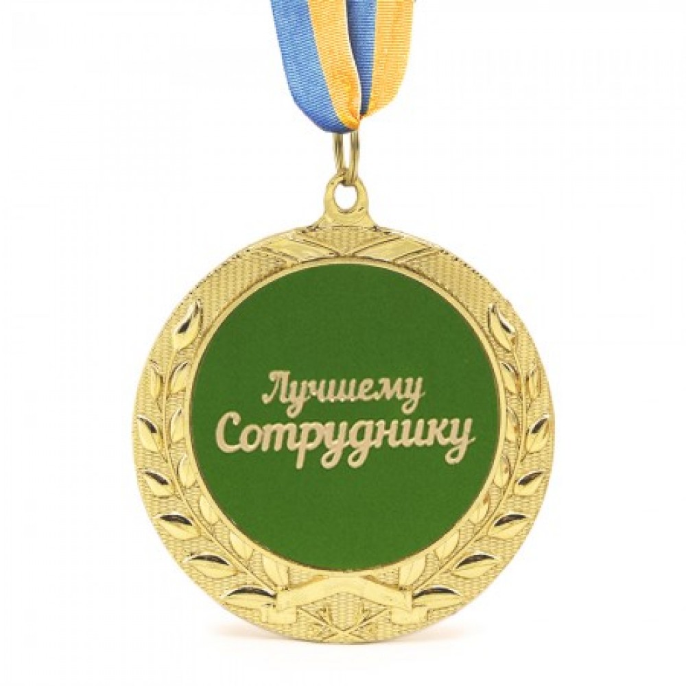 Как известно, фактически весь современный мир компании держится на сотрудниках. Сотрудники оттдела продаж, кадров, рекламы и многие, многие остальные. Собственно эти поразительные люди выполняют большую долю работы на каждом предприятии, помогают получению прибыли и, разумеется, заслуживают благодарности от начальства. А поскольку давно известно, что прекрасный подарок (конечно, после увеличения зарплаты) это признание заслуг, предлагаем вам подарить сотрудникам медаль Лучшему Сотруднику. Необычные подарки и сувениры, которые покажут, насколько вы цените ваших сотрудников, всегда уместны. Покажите сотрудникам, что вы помните и цените их и люди начнут работать с удвоенным, а порой – утроенным усердием, ведь каждому приятно, когда его ценят по заслугам. Подарочная медаль в золотом обрамлении лавровых листьев - произведет действительно приятное и запоминающееся надолго впечатление и несомненно будет замечательным подарком на память! Медаль сделана из сплавов самых разных металлов с покрытием благородного золотого цвета нанесённого булатным способом, диаметром 7 см, размером жетона 5см и жёлто-голубой репсовой лентой длиною 40см, упакована в красочную картонную коробку. Медаль не подойдет для выполнения на ней гравировки.Дополнительная информация: