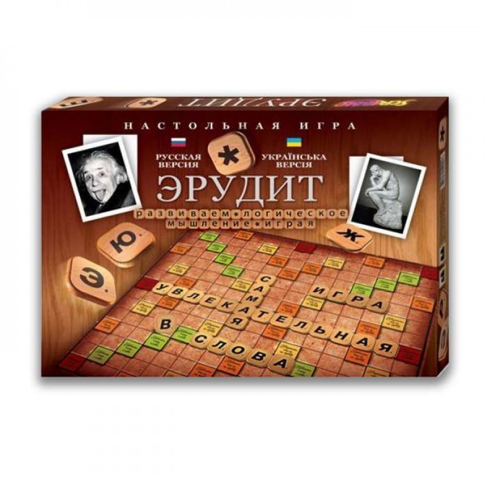 Эрудит — это классическая отечественная лингвистическая игра, которая никогда не надоедает. Ваша задача — с помощью имеющихся букв выкладывать на поле различные слова. Побеждает тот, кто набирает больше очков. Уровень вашей игры зависит от умения составлять слова, рассчитывать оптимальное расположение букв на поле и некоторых тактических навыков. Для кого эта игра? Для родителей, стремящихся развить кругозор и лексикон своего ребёнка. Для тех, кто понимает толк именно в строгих лингвистических правилах данной игры. Для тех, кому нужна настольная игра, которая не надоест практически никогда. Что в коробке? В набор входит: 1 поле, 110 украинских фишек, 110 русских фишек, 1 мешочек для фишек, 1 инструкция, 1 таблица игроков.