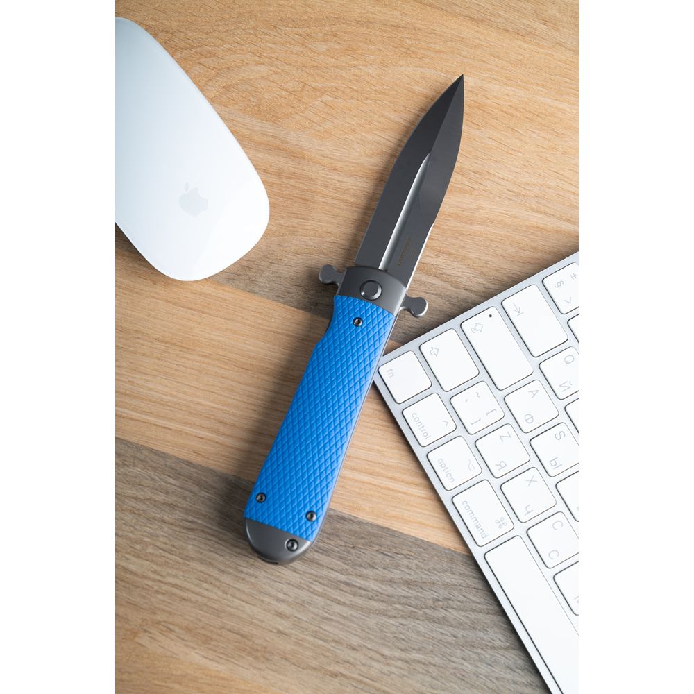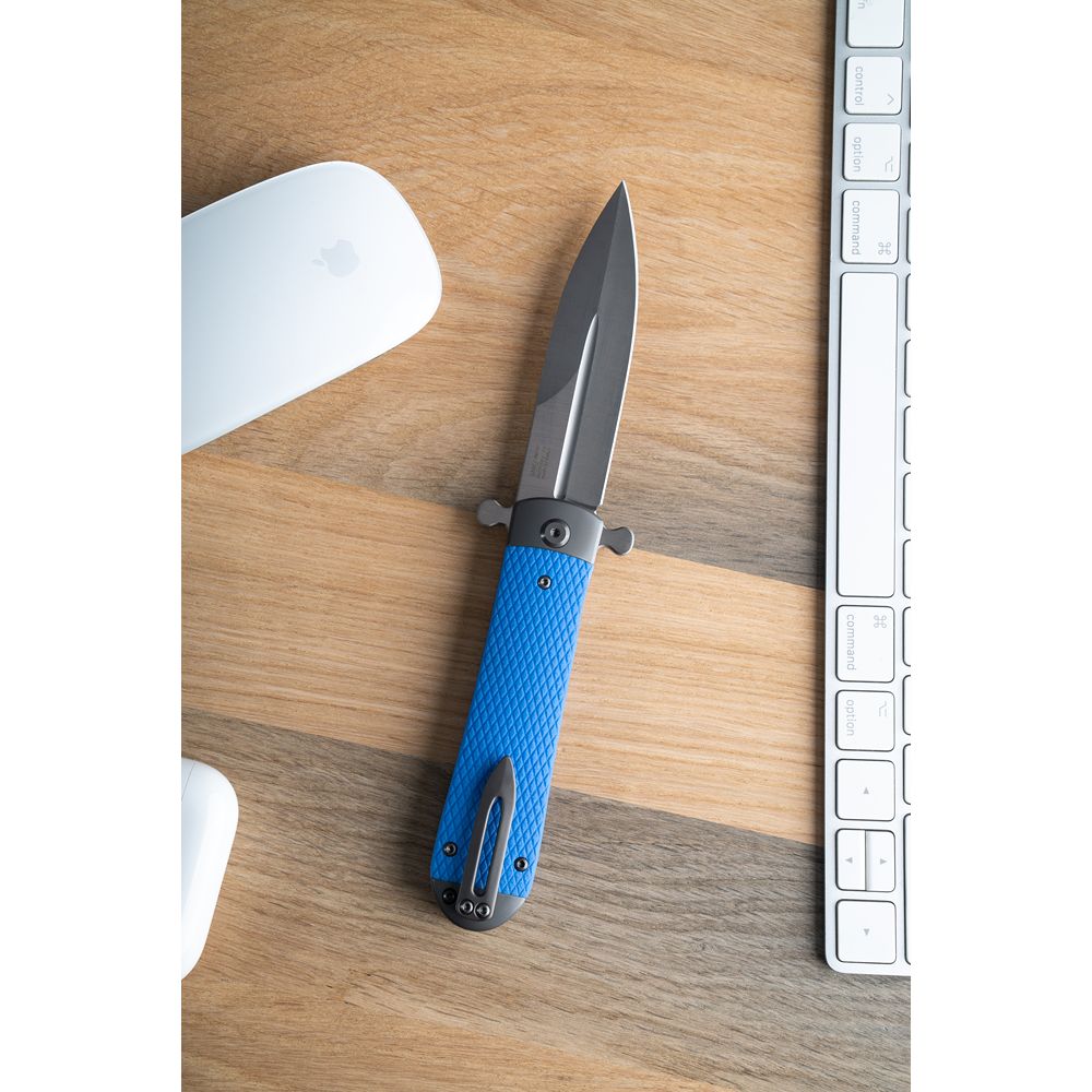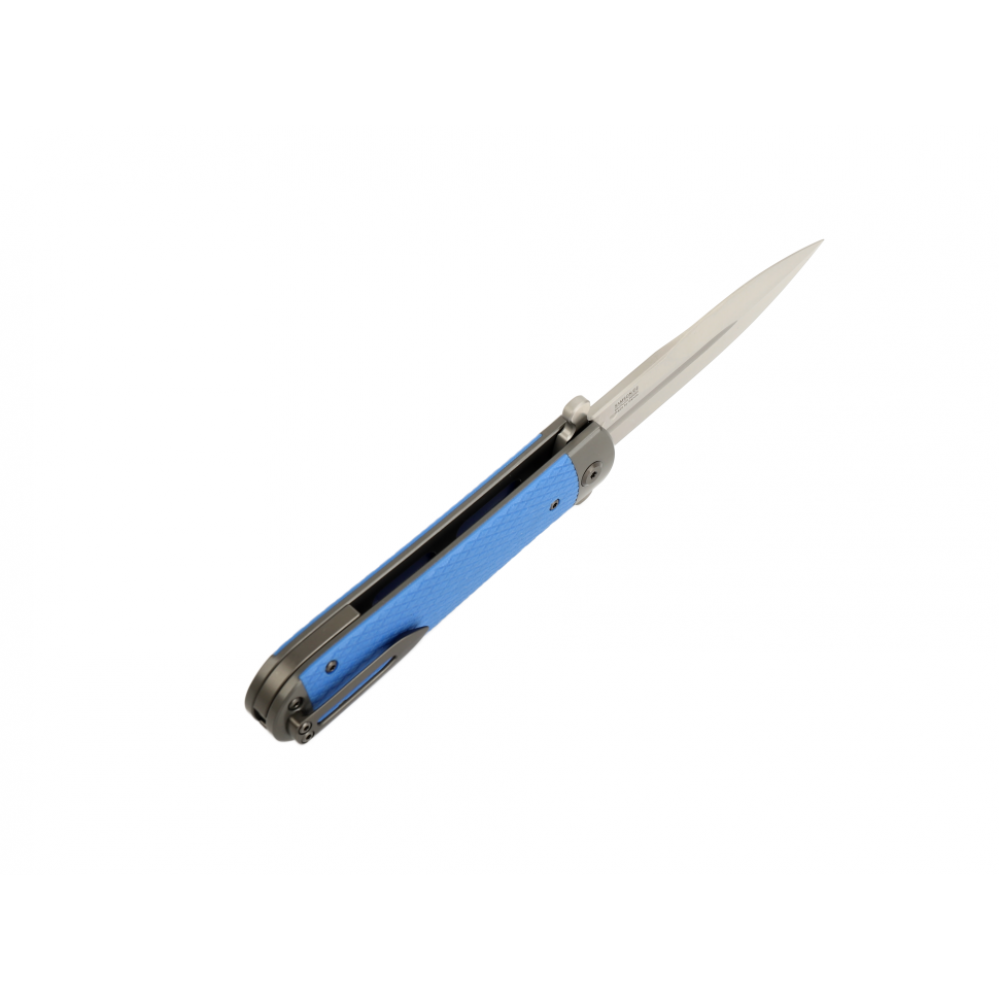 Клинок имеет форму Spear-Point с фальшлезвием со стороны обуха. С такой копьевидной формой легко выполнять колючую работу, когда нужно что-то подковырнуть, наколоть или тонко надрезать. С базовыми задачами клинок эффективно справляется за счет своей длины в 94 миллиметра и толщины, что составляет 3.5 миллиметра.