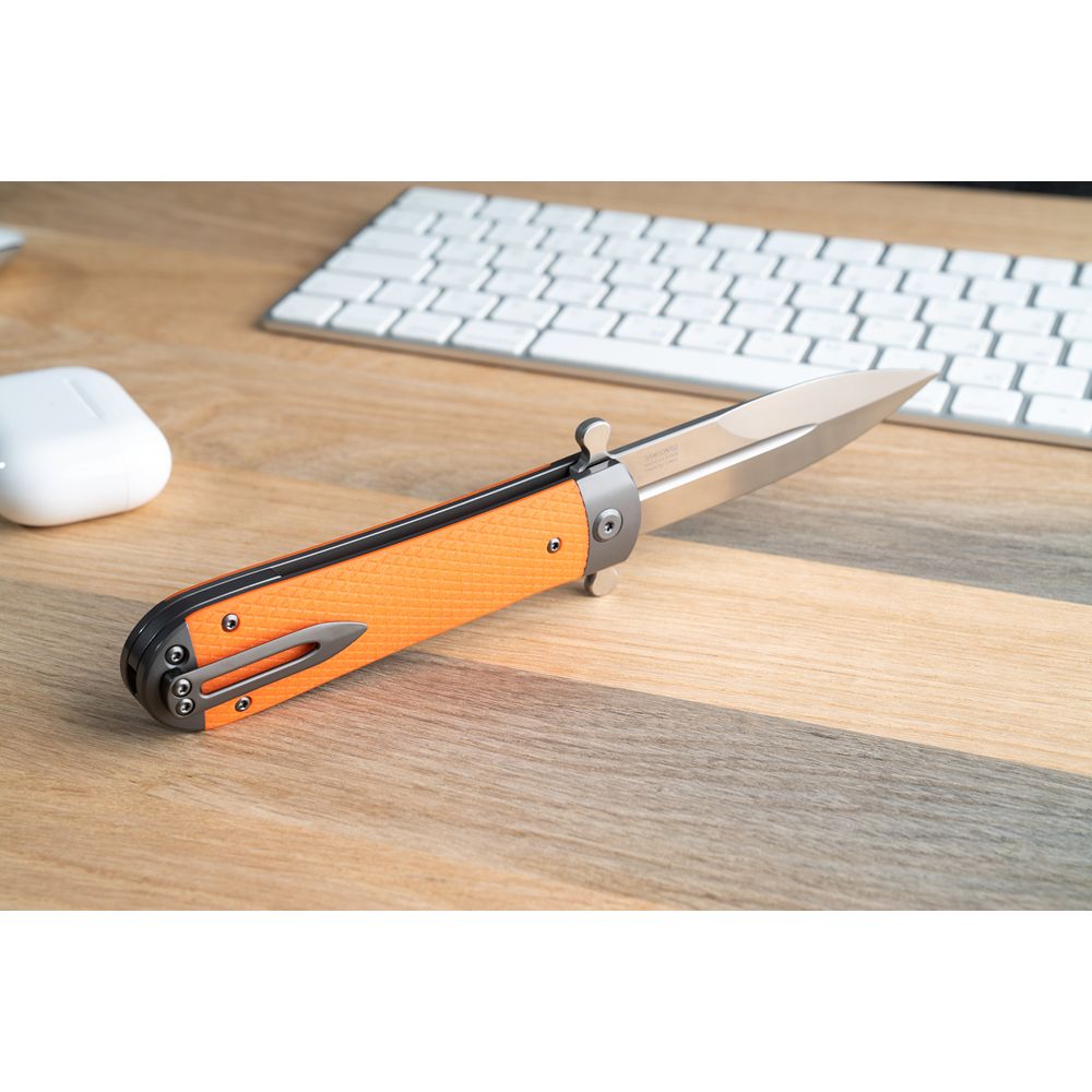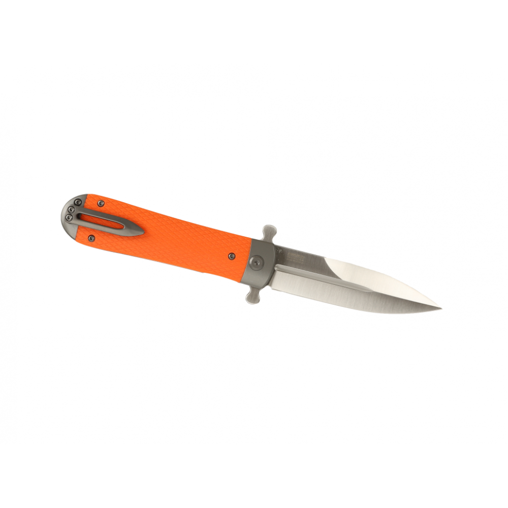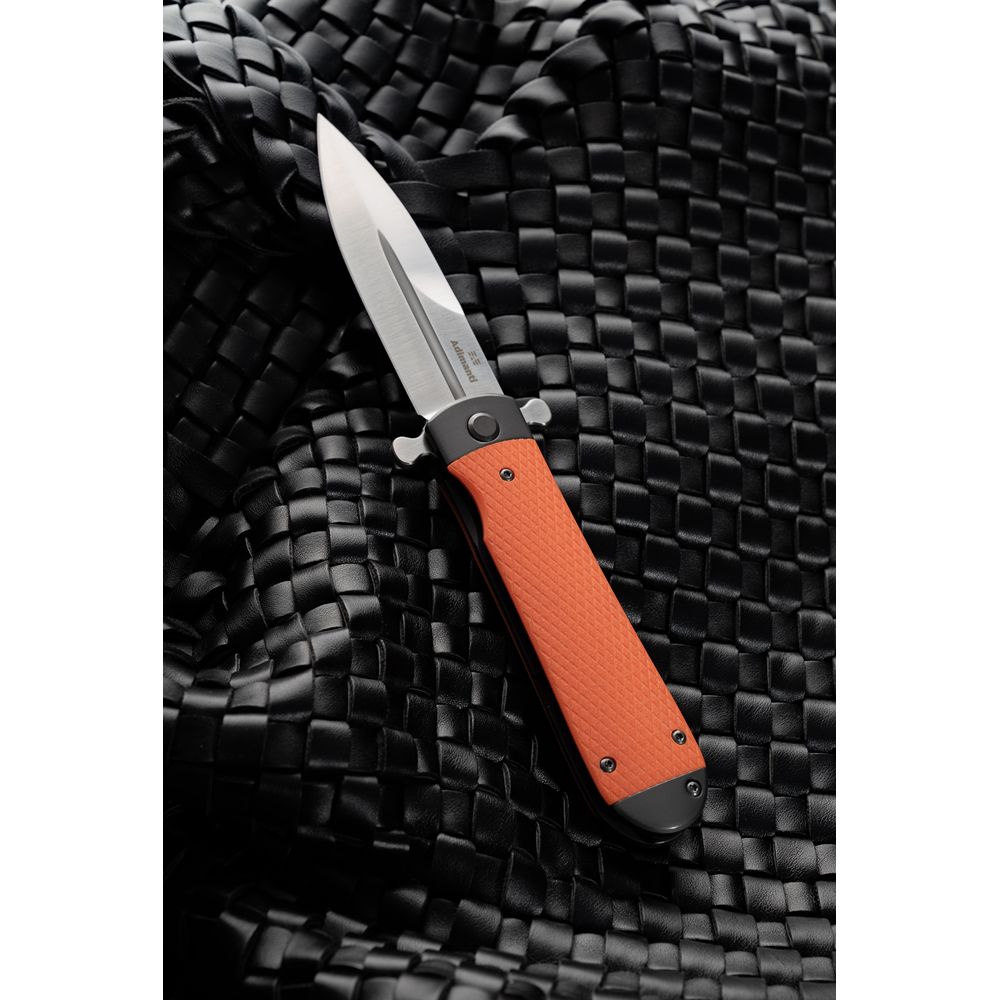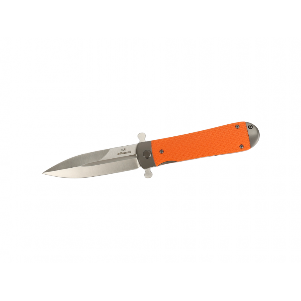 Нож Adimanti Samson имеет визуальное сходство с копьем благодаря симметричному клинку. Изделие рассчитано на использование как в городских, так и в полевых условиях, поскольку оно имеет компактные габариты для комфортного ношения в кармане и имеет высокую устойчивость к воздействию агрессивных сред, особенно ряда кислот и обычной влаги.