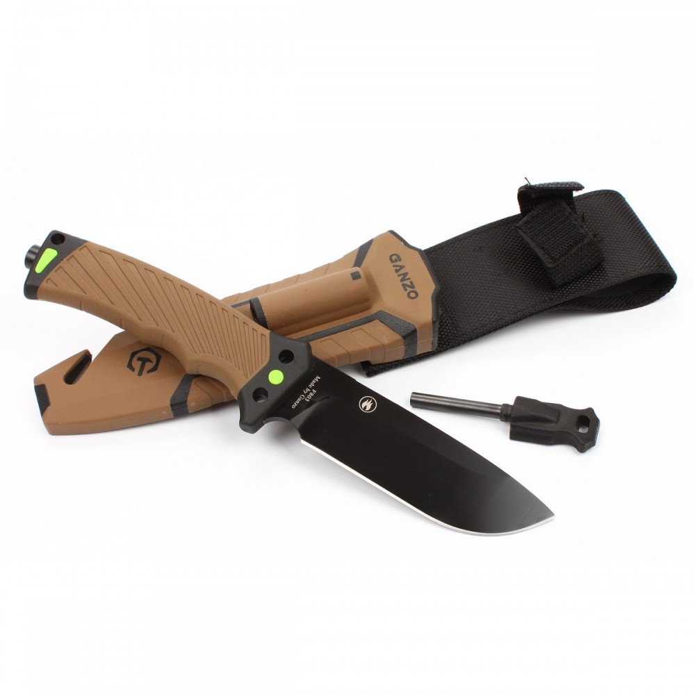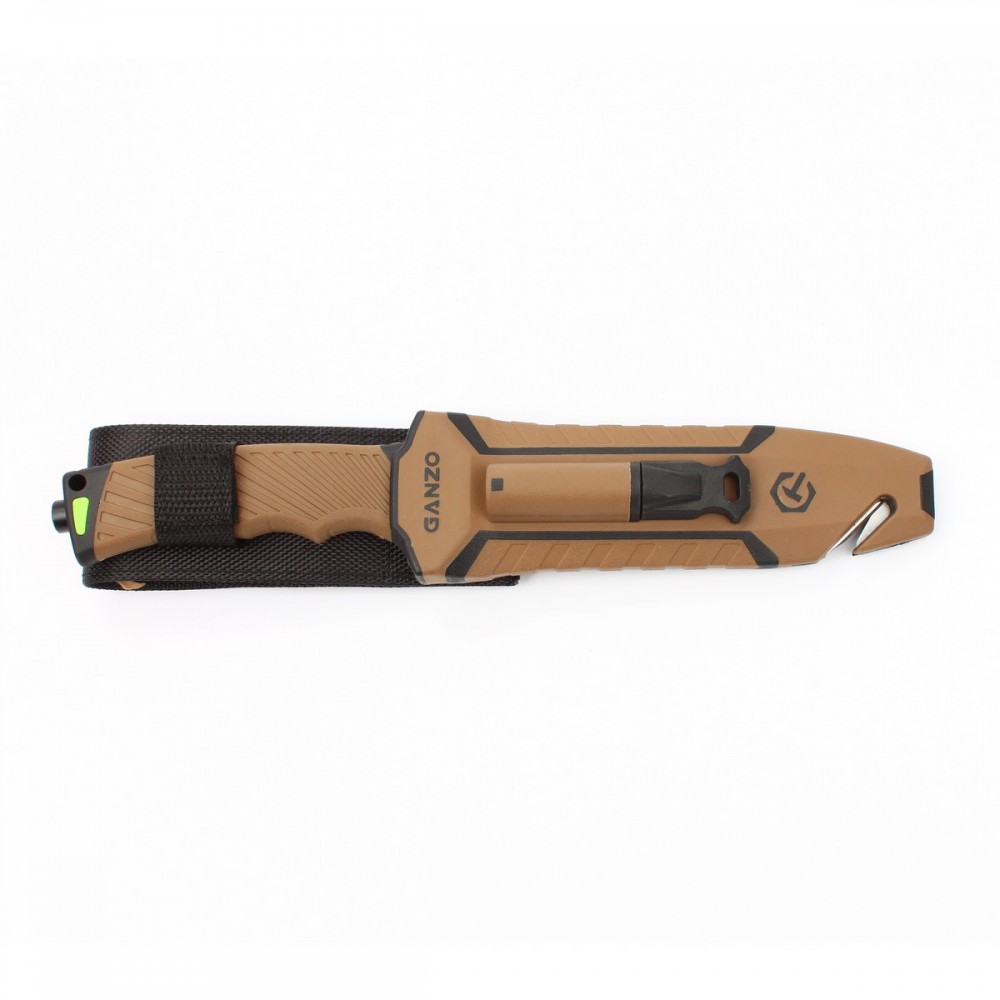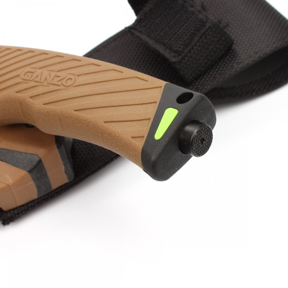 Влагалища для модели Firebird F803 изготовлены очень качественно и максимально продуманы. Они сделаны из нейлона и пластика. Клинок во влагалищах полностью закрыт и защищен от грязи и влаги. Чем плотно сидит внутри, а сами влагалища застегиваются на липучку. На конце ножей (со стороны, обратной той, куда вставляется нож) встроен стропорез, который может потребоваться в любых экстренных ситуациях. Кроме того, в ножнах закреплен алмазный точильный камень, чтобы остроту этого клинка можно было совмещать когда и где это потребуется. Также в ножнах есть огниво.