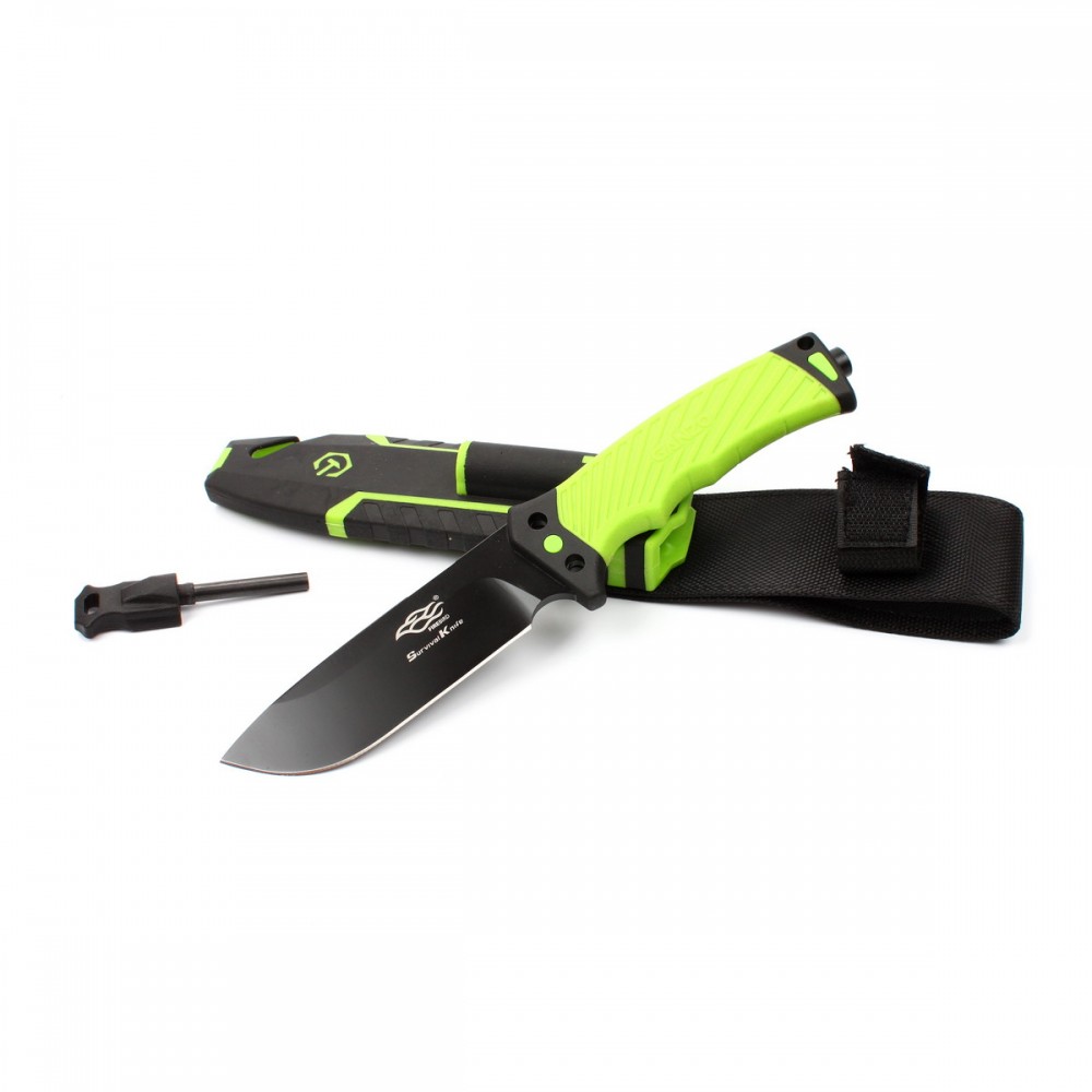 Влагалища для модели Firebird F803 изготовлены очень качественно и максимально продуманы. Они сделаны из нейлона и пластика. Клинок во влагалищах полностью закрыт и защищен от грязи и влаги. Чем плотно сидит внутри, а сами влагалища застегиваются на липучку. На конце ножей (со стороны, обратной той, куда вставляется нож) встроен стропорез, который может потребоваться в любых экстренных ситуациях. Кроме того, в ножнах закреплен алмазный точильный камень, чтобы остроту этого клинка можно было совмещать когда и где это потребуется. Также в ножнах есть огниво.