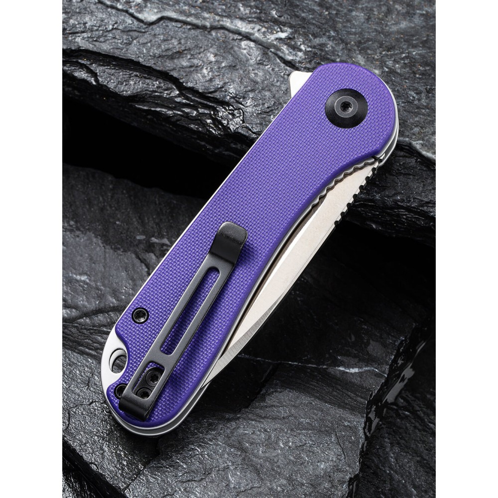 Складаний ніж Civivi Elementum C907V є компактним кишеньковим інструментом для щоденного застосування. Кулькові підшипники дозволяють швидко відкривати та закривати модель. Замок різновиду Liner Lock. Лезо форми drop point вважається універсальним, оскільки однаково ефективно виробляє як колючі, так і ріжучі рухи.