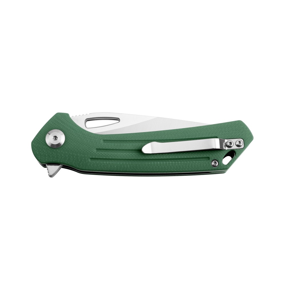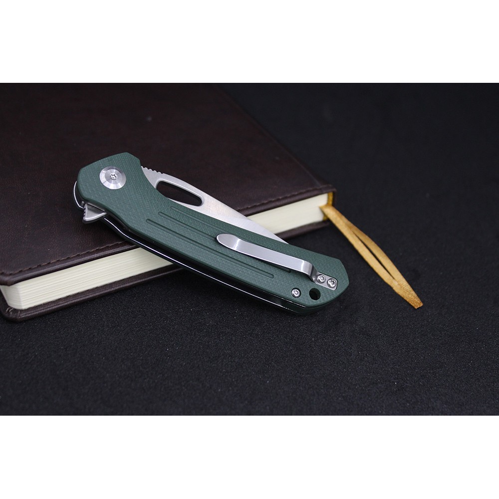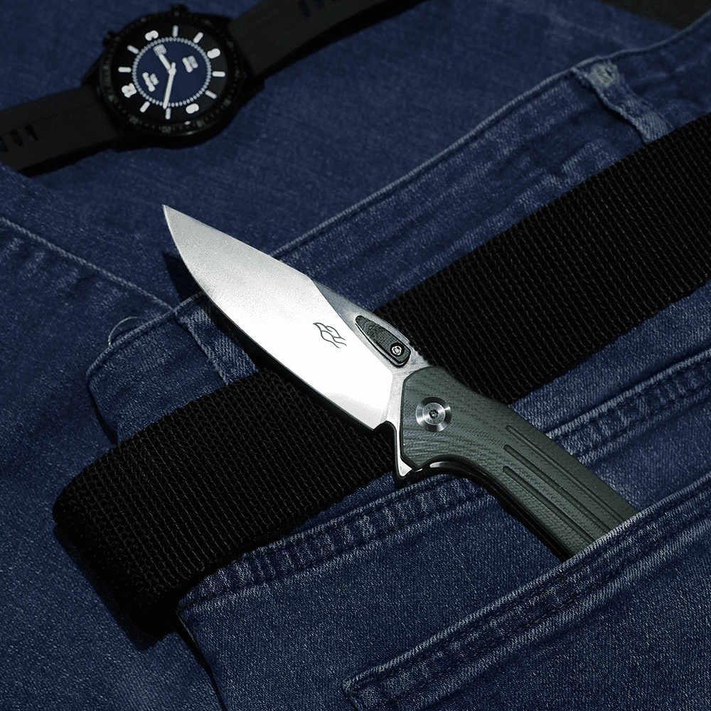 Чем складной Ganzo Firebird FH921 представляет собой карманное изделие, рассчитанное, в том числе, на использование в туризме. Особенность данной модели – в нетипичной форме рукояти, имеющей выемку в верхней части ближе к обуху. Насечки на обухе способствуют лучшему сцеплению с пальцем пользователя. Другая отличительная черта – отверстие в области клинка на месте, где обычно располагается шпенек. Конструктивный элемент помогает легко открыть изделие рукой. Осевой винт снабжен круглым металлическим подшипником.