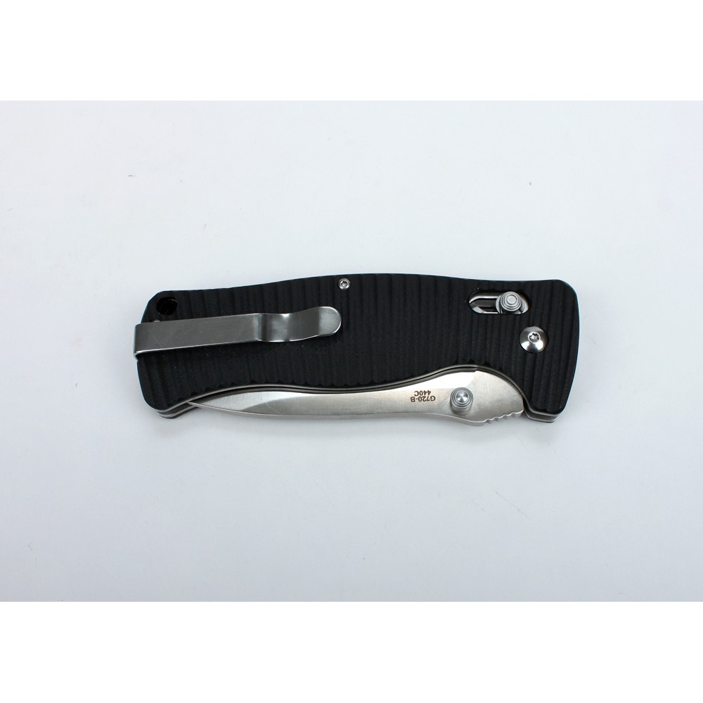 Складной нож Ganzo G720 в сложенном состоянии имеет длину всего 12 см, поэтому легко поместится в кармане. Клинок этого ножа получил заточку прямого типа. Его длина составляет 9 см, толщина со стороны обуха – 0,4 см. В качестве материала для ножа производители выбрали стойкую к коррозии хромистую сталь марки 440С. Ножи из такой стали легко затачиваются и долго остаются острыми. Твердость клинка в модели ножа Ganzo G720 оценивается в пределах +-58HRC.