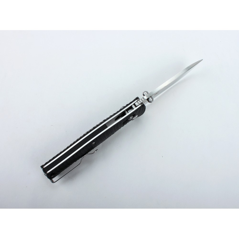 В данной модели установлен замок Axis. Это замок штифтового типа, в котором клинок фиксируется с помощью подпружиненного металлического штифта. Пользоваться замком Axis все равно удобно любой рукой. А его преимущество в том, что нож с замком Axis не может сработать случайным образом. Единственное условие для исправности замка – необходимо поддерживать его в чистоте.