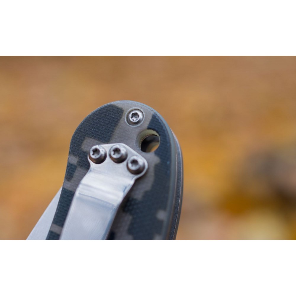 Фиксатором лезвия ножа выступает замок AxisLock, позволяющий открыть клинок одной рукой. Это надежный механизм, полностью исключающий случайное изменение положения лезвия и гарантирующий пользователю полную безопасность работы с ножом.