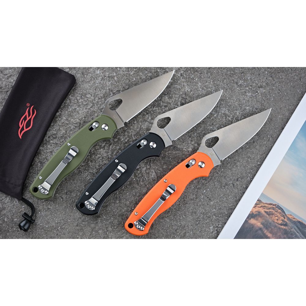 Специалисты компании Ganzo представили нож Ganzo G729 в четырех вариантах: с рукояткой классического черного, ярко оранжевого, томного зелёного и камуфляжного цвета. Такому разнообразию способствовал материал, выбранный для ручки ножа – современная разновидность пластика под названием G10. Это композит на основе стекловолокна и эпоксидных смол, легко окрашиваемый в любой цвет, позволяет изготовить прочные и долговечные детали эргономичной формы. Так что нож Ganzo G729 удачно объединил практические свойства и отличный внешний вид.