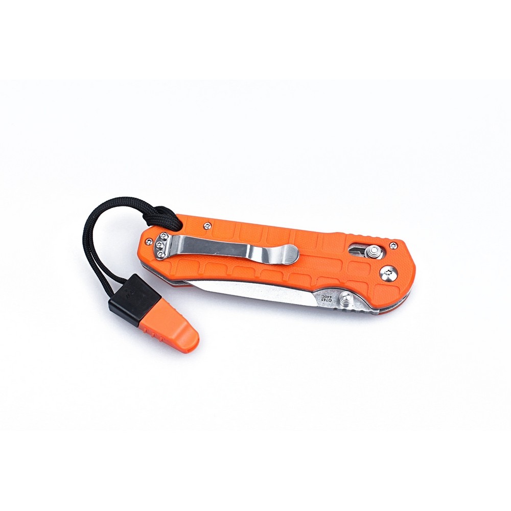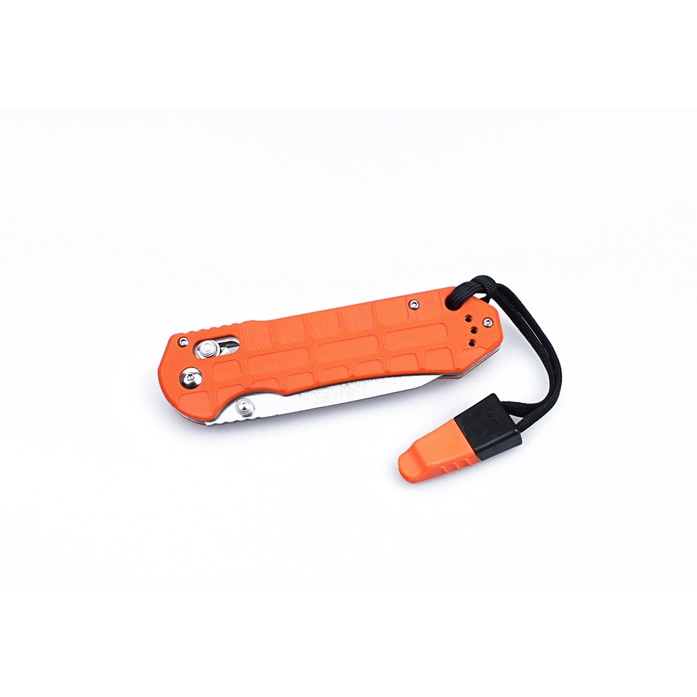 Ну а бонусом модели Ganzo G7452P является наличие ремешка на руку, продеваемого в рукоятку, и свистка. Последний может использоваться для сигналов во время тумана или в других условиях плохой видимости.