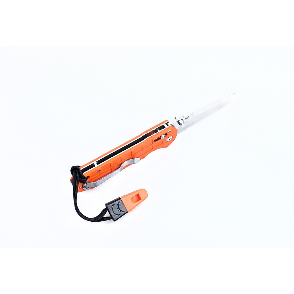 Ну а бонусом модели Ganzo G7452P является наличие ремешка на руку, продеваемого в рукоятку, и свистка. Последний может использоваться для сигналов во время тумана или в других условиях плохой видимости.