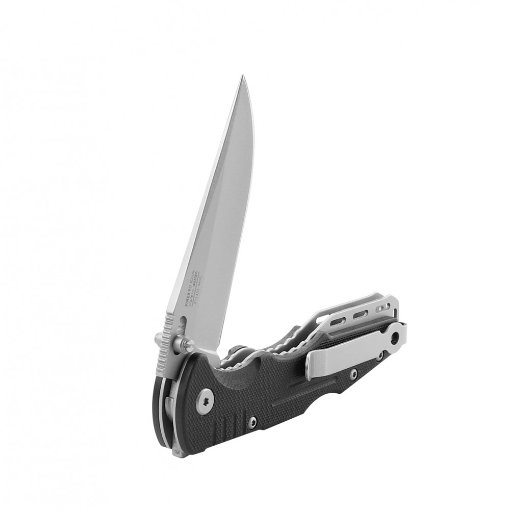Открывается клинок с помощью двустороннего шпенька. Одной из «фишек» модели Firebird F713M является то, что положение шпенька можно вручную отрегулировать, сделав таким образом, чем максимально удобным для себя. А вот блокировка клинка в открытом положении производится замком Back-lock.