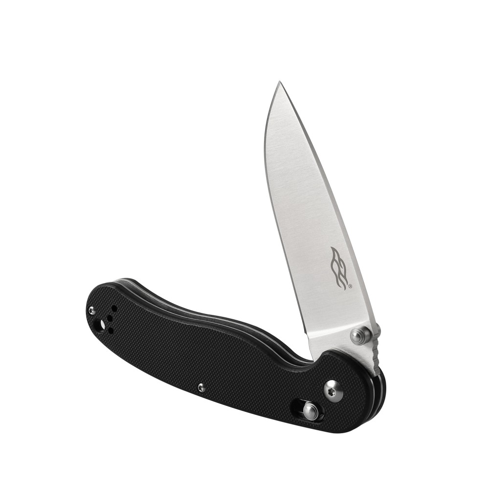 Удобство ножа Firebird 727M состоит в том, что это сложная модель. Он без труда поместится в любом рюкзаке или даже в кармане одежды. Длина ножа в этом состоянии составляет всего 12 см. Зато при открывании его размеры увеличиваются до 21 см, из которых 8,9 см приходится на лезвие. Клинок заточен заточкой гладкого типа, что также влияет на его универсальность. Толщина клинка в самом широком месте составляет 0,35 см. Для его изготовления производители использовали одну из наиболее сбалансированных марок нержавеющей стали – 440С. Такой сплав хорошо противостоит образованию ржавчины и появлению других признаков коррозии. При этом, он достаточно прочен – 58 HRC, а также недорог.