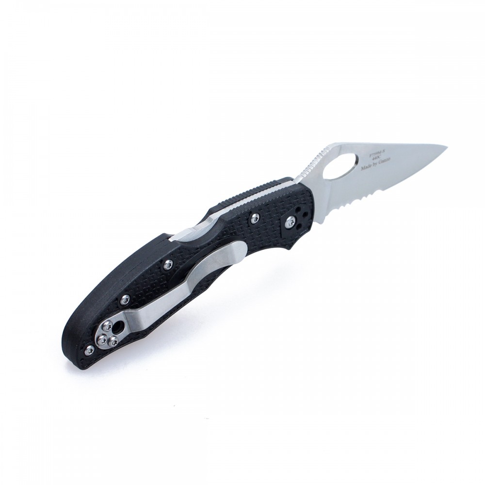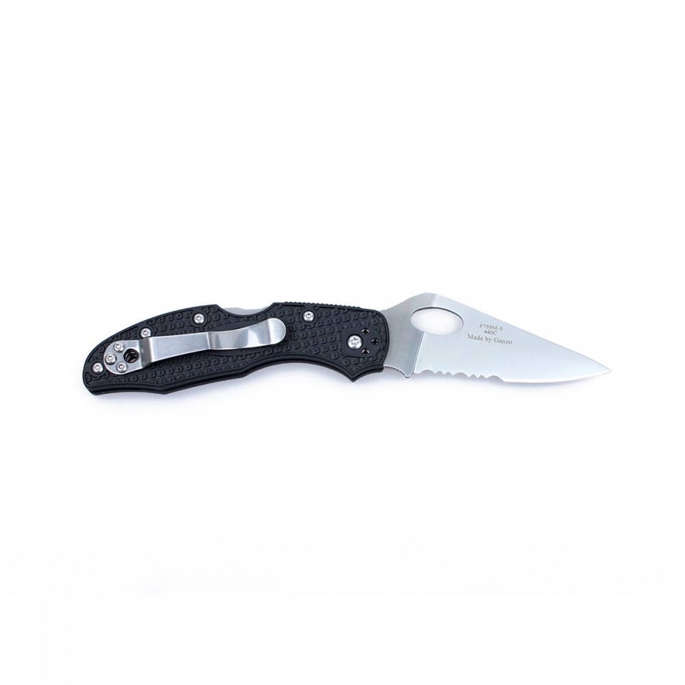 Простой по конструкции, но очень удобный в работе чем F759M-SBK вошел в семейство моделей для повседневного использования. Он сделан совсем небольшим и достаточно легким (лишь 67 грамм), тем не менее, легко справится с большинством задач, которые будут актуальны в городе или в процессе отдыха на природе. Этим ножом можно почистить рыбу, порезать ингредиенты для бутербродов либо походного обеда, разрезать упаковку посылки. Учитывая универсальность модели, изготовители выбрали для нее долговечные материалы. Для лезвия используется одна из наиболее популярных разновидностей нержавеющей стали – 440С. Она известна отличным балансом коррозионной стойкости и жесткости металла, которая составляет 58 единиц шкалы Роквелла. Потому чем долго держится острым, однако и ухаживать за ним просто. На финишной стадии нож подвергается сатинированию, что положительно сказывается на внешнем виде ножа, ведь потертости и царапины на нем становятся видны только после длительного активного использования. Режущая кромка F759M-SBK сделана комбинированной. Серрейторный участок предназначается для разрезания веревок, войлока, ткани и кожи. С этими неоднородными по структуре материалами нож справится достаточно быстро. Гладкий участок кромки аккуратно разрежет любые другие материалы. Общая длина лезвия составляет 75 мм. Рукоятка выполнена в современном стиле: с плавными изогнутыми формами, выемкой снизу для пальцев, узорчатой накаткой на поверхности. Но она не только красива, но и очень удобна. К тому же выбранный для ручки ножа материал (стеклонаполненный нейлон) известен большим запасом долговечности и стойкости практически к любым нежелательным явлениям. Он не выгорает, не впитывает воду, обладает высокой прочностью. В довершение, чем оборудования качественным замком, который удерживает его клинок в выбранном положении. Называется он Back Lock. Особенности:- EDC складной нож;