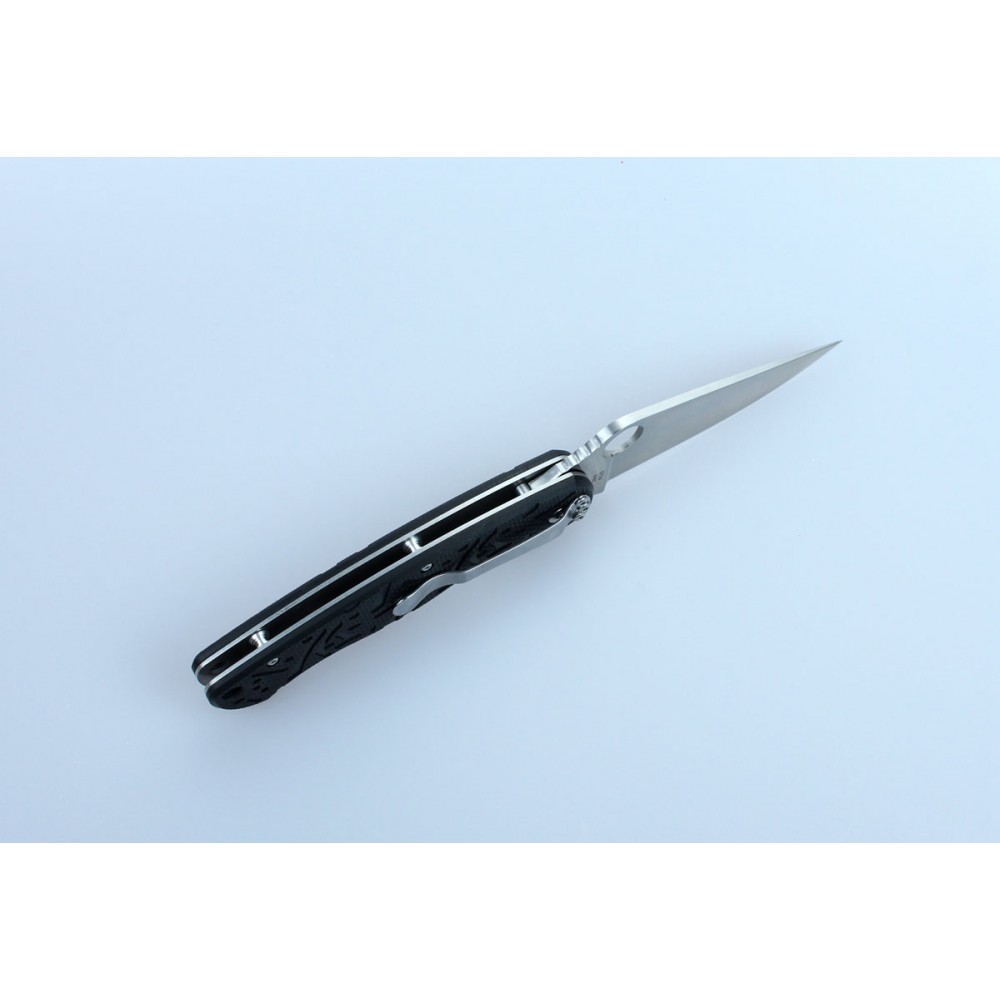 Нож Ganzo G7301 будет полезен максимально широкому кругу покупателей. Его можно использовать и в качестве городской модели EDC, и в качестве туристического ножа. Этому способствовало сочетание оригинального современного дизайна и качественных материалов. Основной функциональной частью ножа по праву можно выделить его клинок. Этой детали производители уделили особое внимание, использовав для лезвия крепкую нержавеющую сталь марки 440С. Этот сплав закаленный до твердости +-58HRC, благодаря чему долгое время остается остро заточенным. В то же время он хорошо противостоит появлению ржавчины и других проявлений коррозии, благодаря чему подходит охотникам, рыбакам и туристам. Лезвие ножа гладко заточено и подходит для работы с пищевыми и другими продуктами. Его длина составляет 88 мм, а толщина по обуху – 3,3 мм. По мере приближения к рукоятке клинка он значительно расширяется и линия обуха поднимается. В верхней части клинка расположено отверстие круглой формы, которое как и у ножей Spyderco предназначено для открывания клинка пальцем.