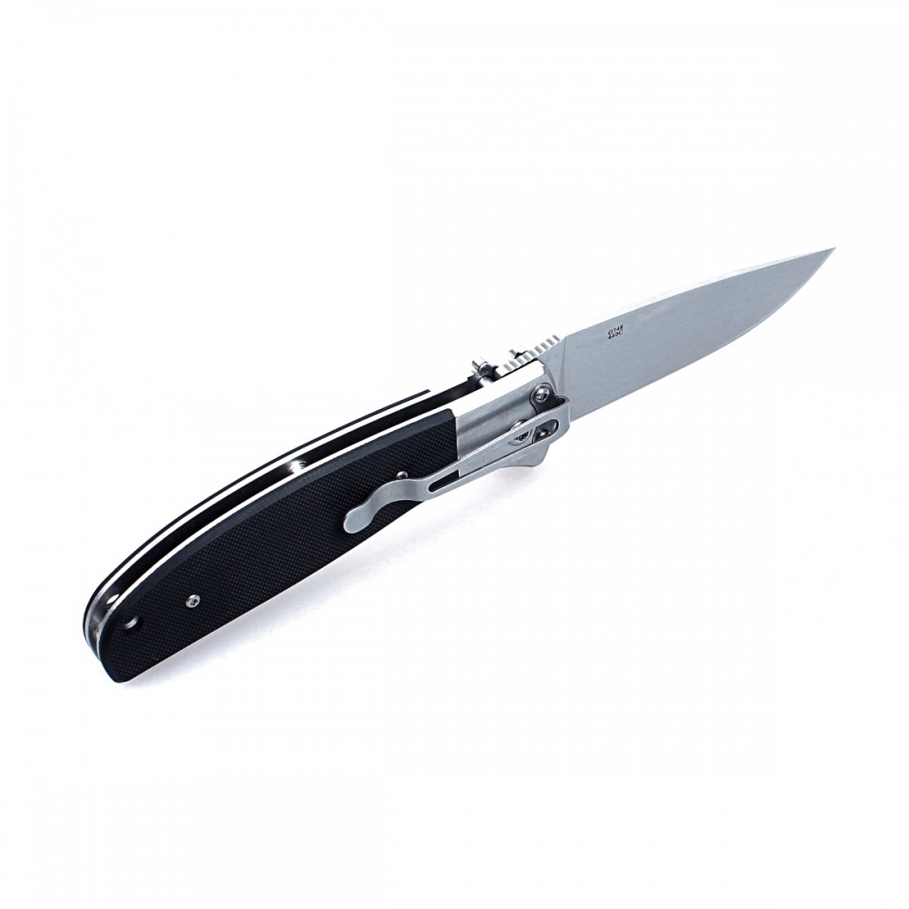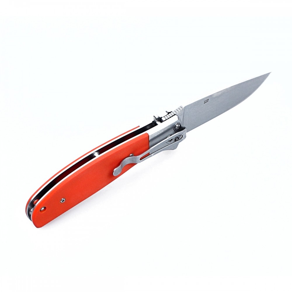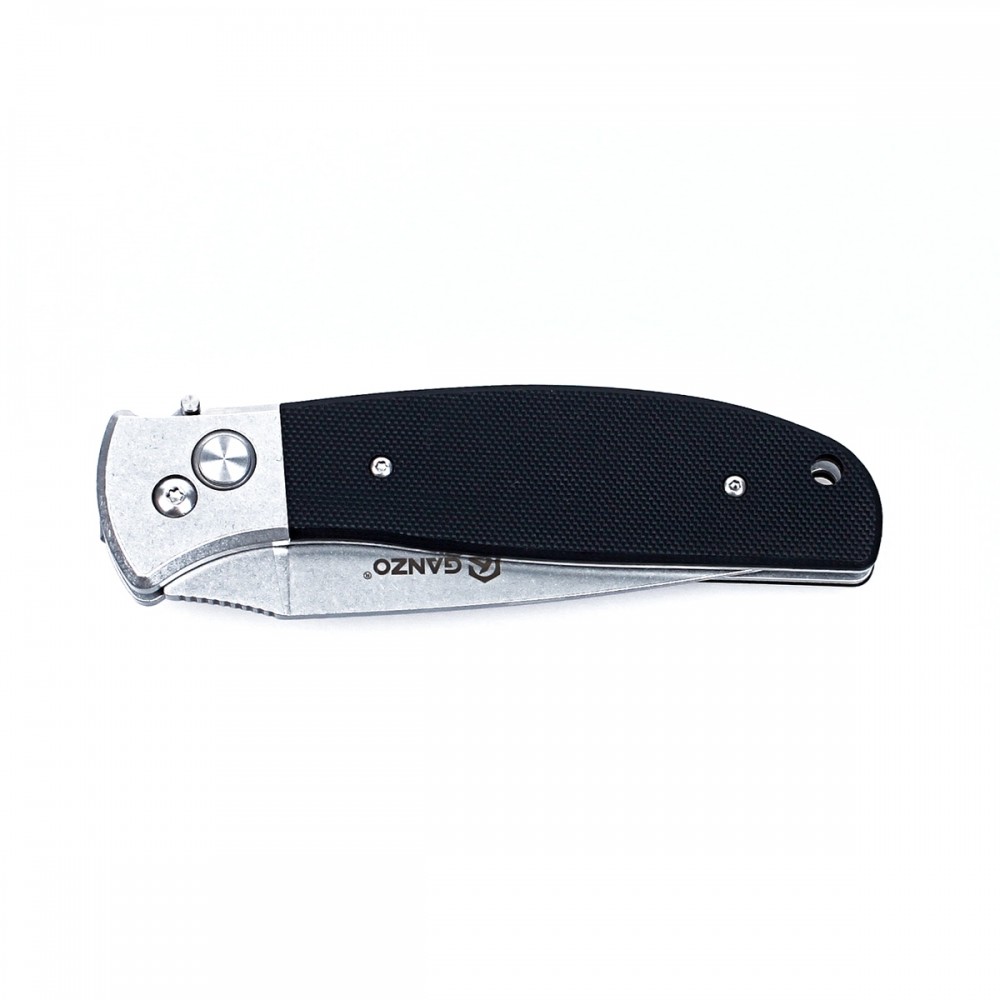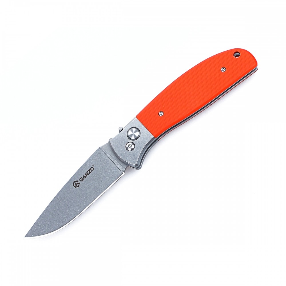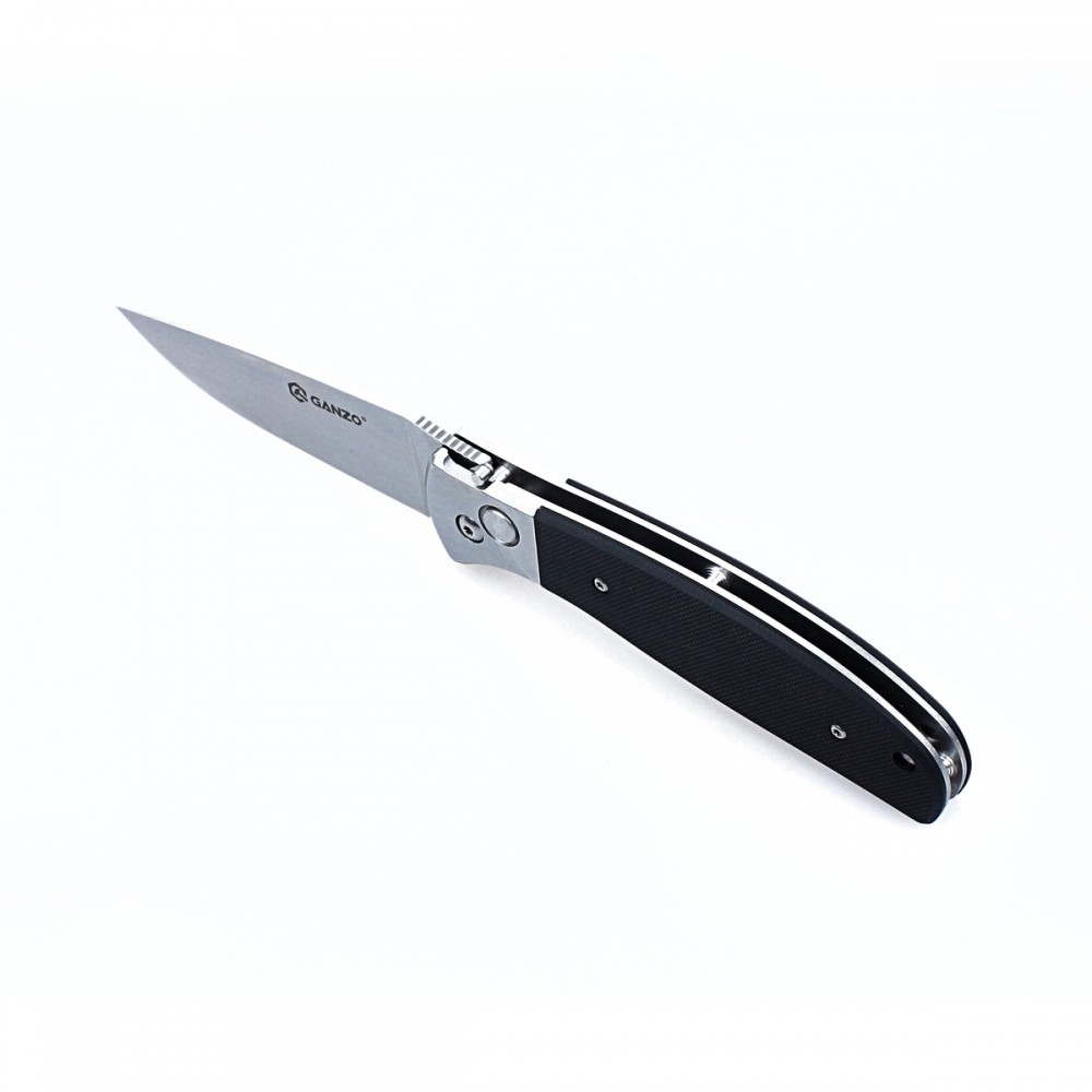 Компанія Ganzo продовжує випускати зручні і красиві складні ножі. Модель Ganzo G7482 орієнтована на потреби туристів, любителів полювання і рибалки. Це практичний ніж з нержавіючим клинком. Він виконаний з якісної за своїми характеристиками марки сталі 440С. Це нержавіючий метал з досить високою твердістю, щоб зроблений з нього ніж міг довго зберігати гостроту заточки. До речі, лезо цілком заточене гладко. Цей тип заточення ще називають plain. Він оптимально підходить для розрізання продуктів харчування, будь-яких інших матеріалів з однорідною структурою. Крім того, форма клинка така, що на його кінці є гострий кінчик, який зручно використовувати для невеликих точних надрізів. Розмір по довжині клинка дорівнює 8,9 див. При цьому, товщина дорівнює 3 мм, що також підвищує міцність ножа. Адже лезо такої товщини підходить для роботи з твердими матеріалами. Поверхня ножа блищить на сонці, але не є повністю глянцевою на сонці, оскільки метал відшліфований жорсткими матеріалами, які залишили на його поверхні дрібний штриховий узор.