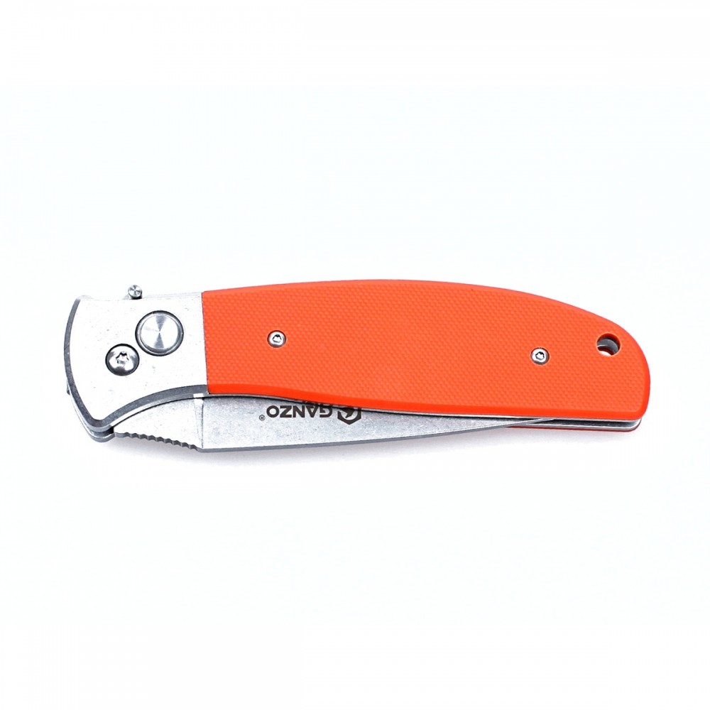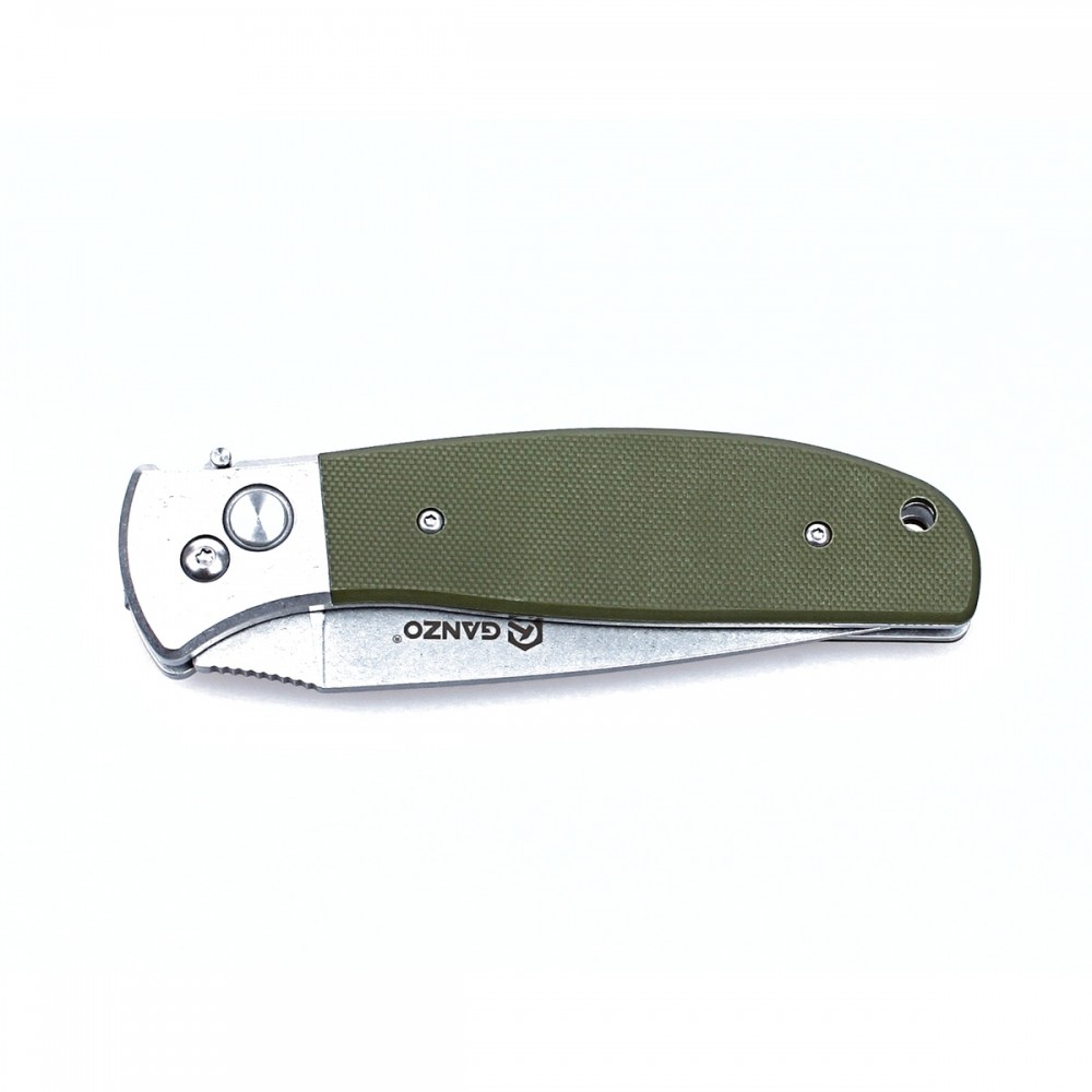 Рукоятка ножа Ganzo G7482 виготовлена з матеріалу G10. Це скловолокно, яке легко формується і забарвлюється практично в будь-який колір. При цьому, від пластика воно відрізняється підвищеною міцністю і стійкістю до вигоряння, високих або низьких температур, іншим негативним факторам. Щоб ніж не вислизав з вологих рук або рук в рукавичках, на накладки нанесено рисунок накатка. Також з одного боку рукоятки прикручена сталева кліпса, яка служить для закріплення ножа на ремені або в кишені. Є і наскрізне отвір для протягування в нього темляка.