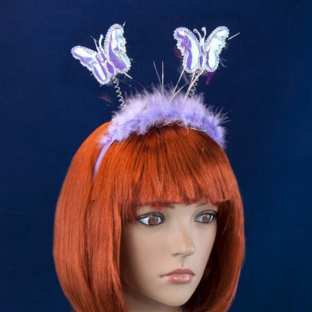 Ободок карнавальный Бабочка на пружинках (сиреневая)