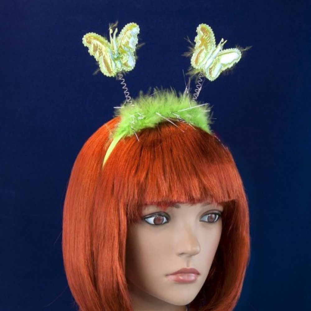 Ободок карнавальный Бабочка на пружинках (зеленая)