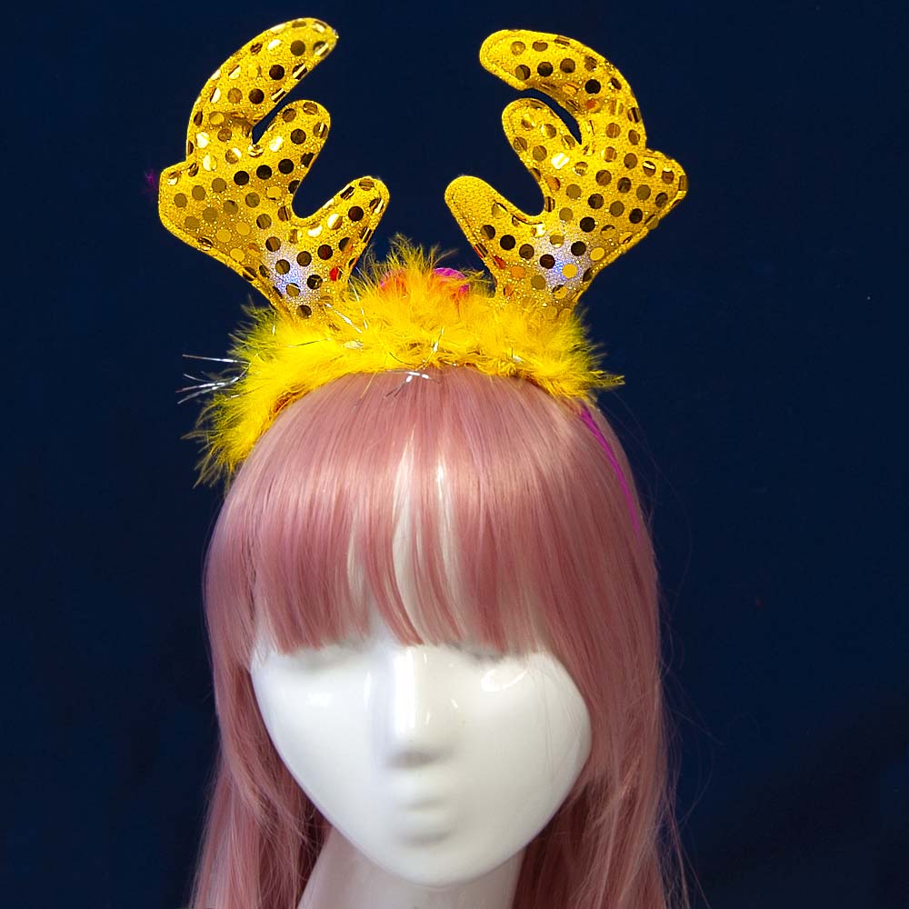 Обруч новогодний Рога Оленя светящиеся (желтый)