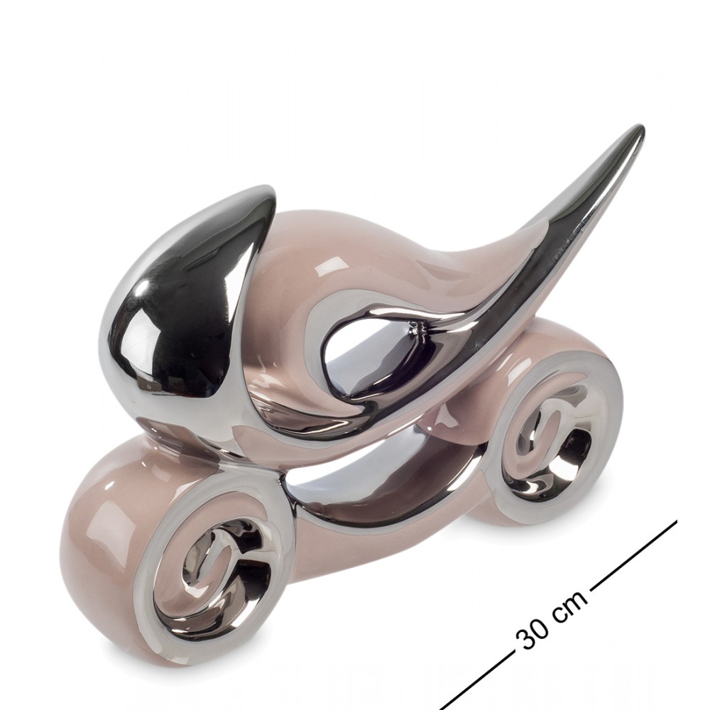 Фигурка "Супер байк" (Art Ceramic); Эта прекрасная сверкающая статуэтка из фарфора изображает мотоцикл. Подобных моделей этого автотранспортного средства не бывает, это быстрее стилизация под скоростной байк, в котором бензобак и сиденье соединены в некую каплевидную форму, а колеса едва ли не большей ширины, чем их диаметр. Но самое основное передано прекрасно: сразу заметно, что это – скоростная машина, всей собственной сущностью устремленная вперед.