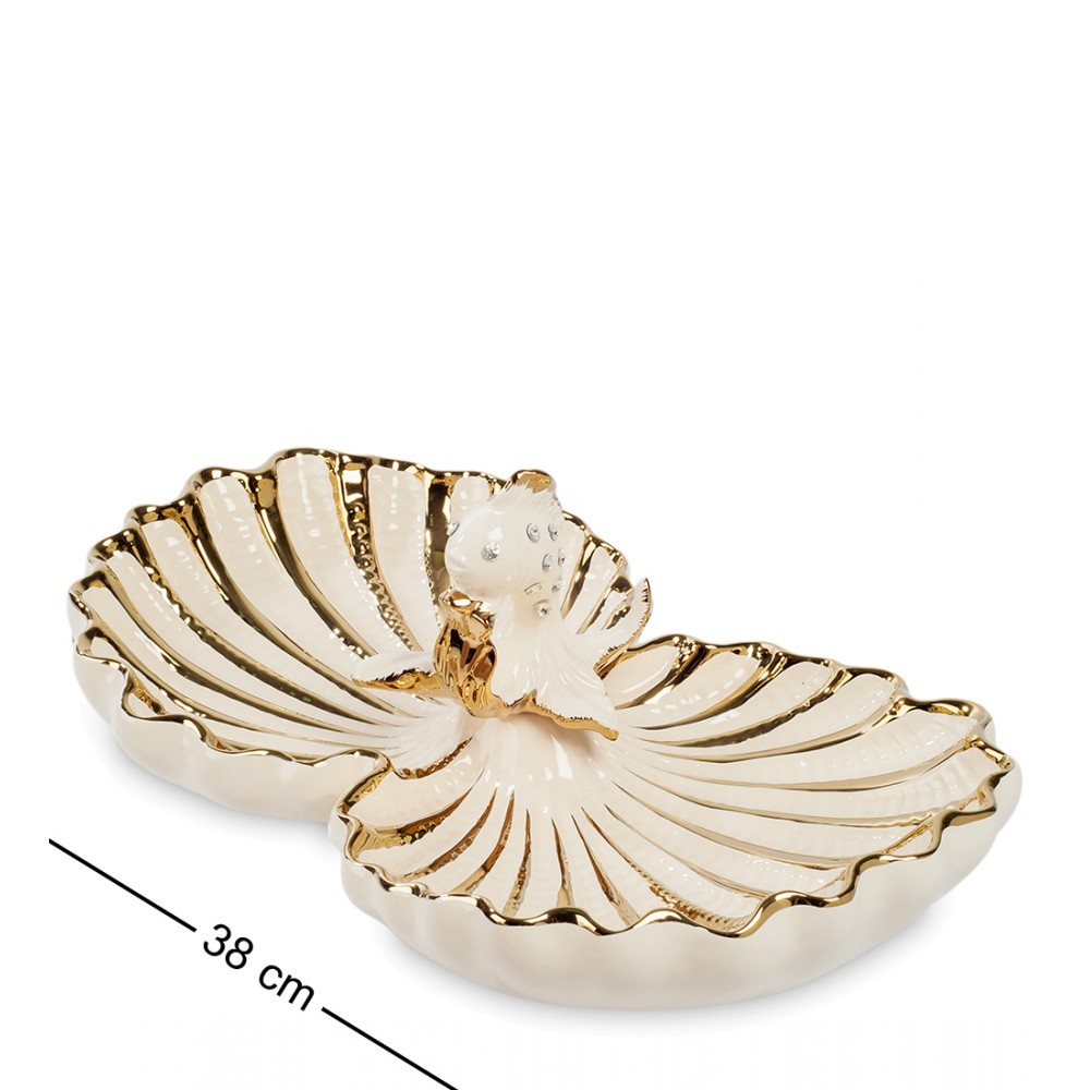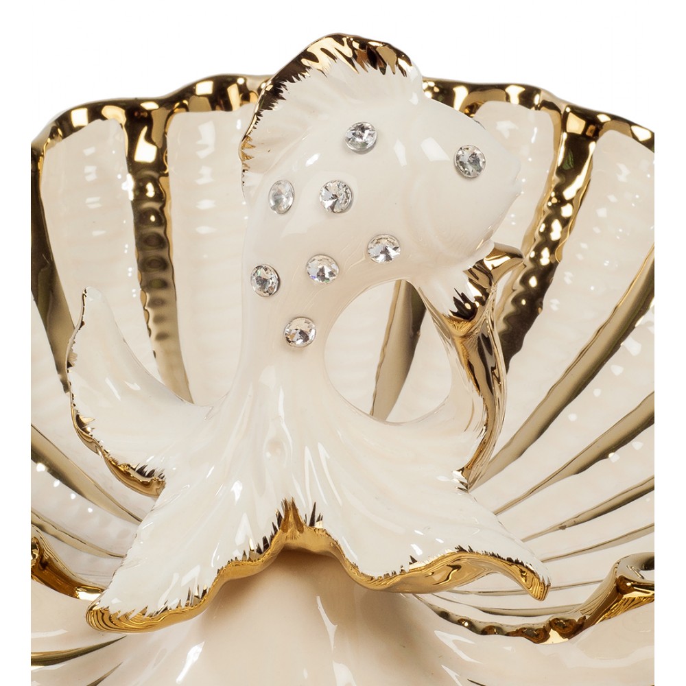 Менажница "Золотая Рыбка" (Art Ceramic); Если кто-то надумает провести конкурс на самую красивую в мире посуду, то менажница « Золотая рыбка » занимает в нем призовое место. Изделие выполнено в виде раскрытой морской ракушки, в самом центре которой с гордостью восседает золотая рыбка.