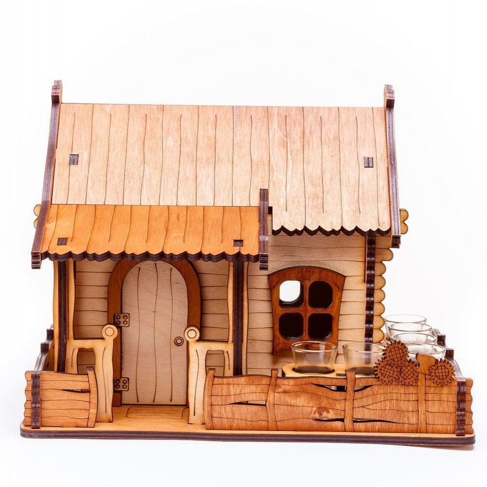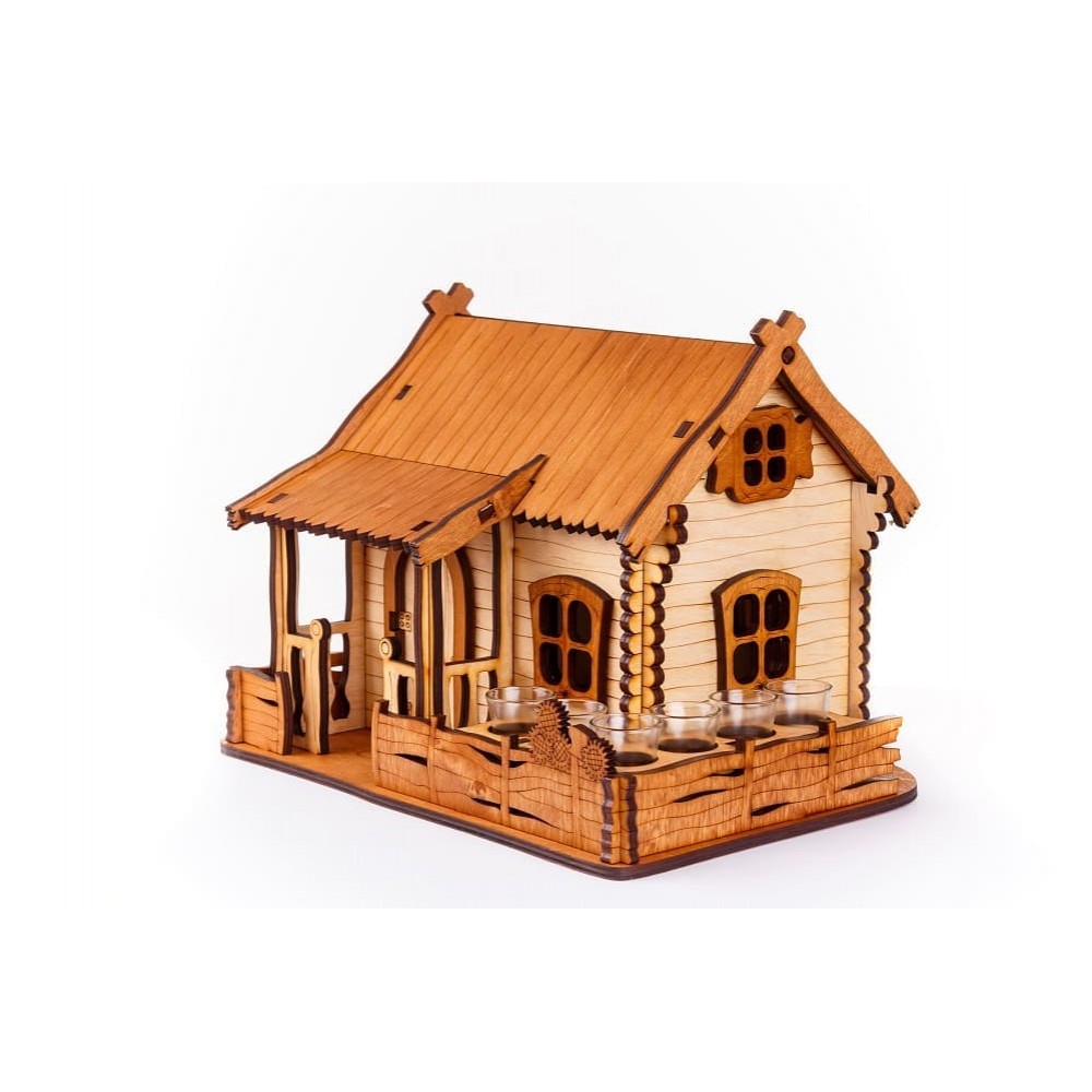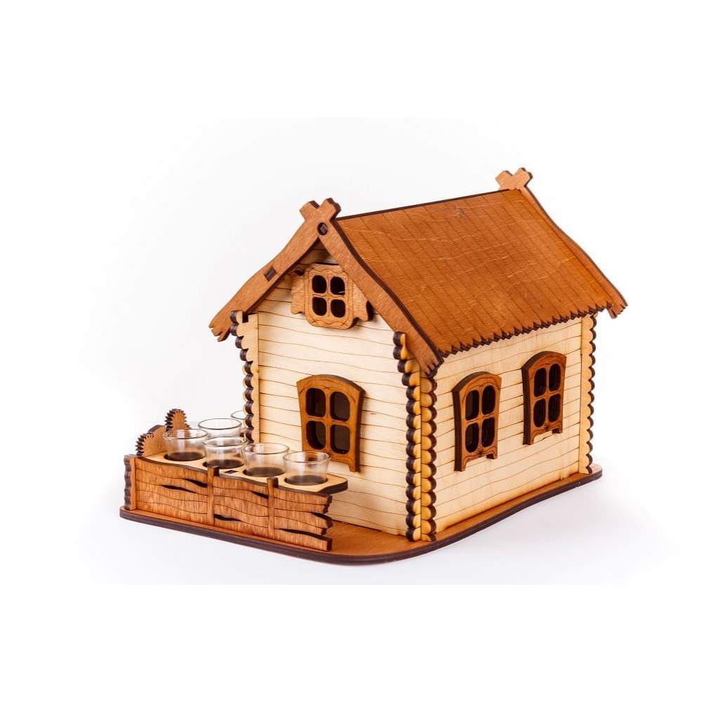 Украсьте праздничное застолье необычной подачей алкогольного напитка с нашим мини-баром Хатка. Также будет отличным подарком. С ним так же идёт стандартный набор рюмок из 6 штук.