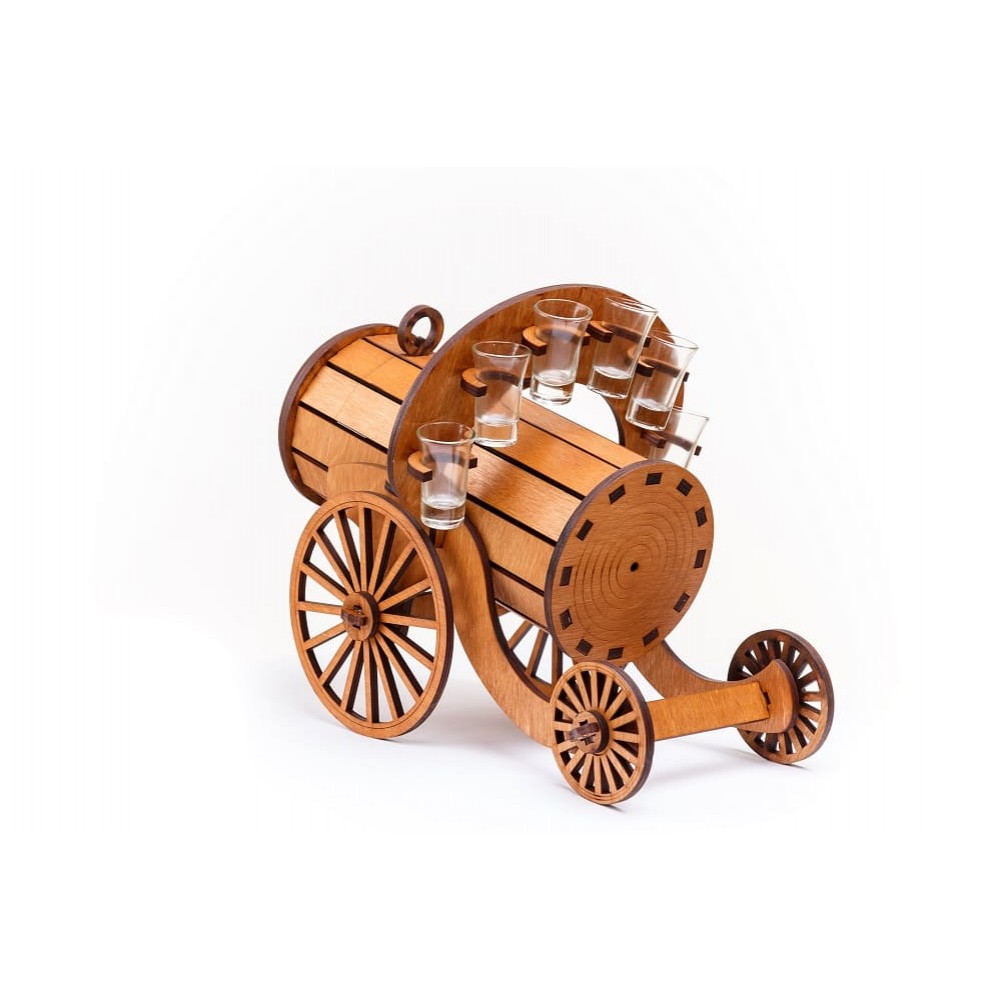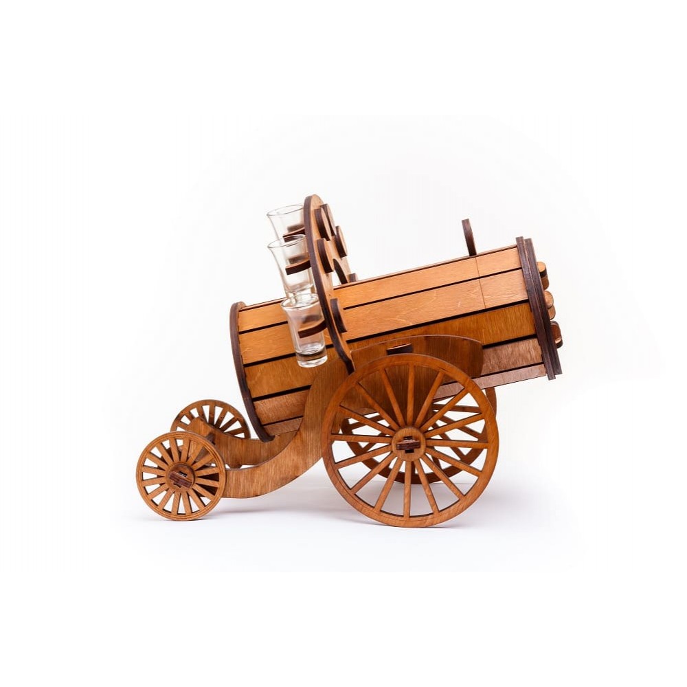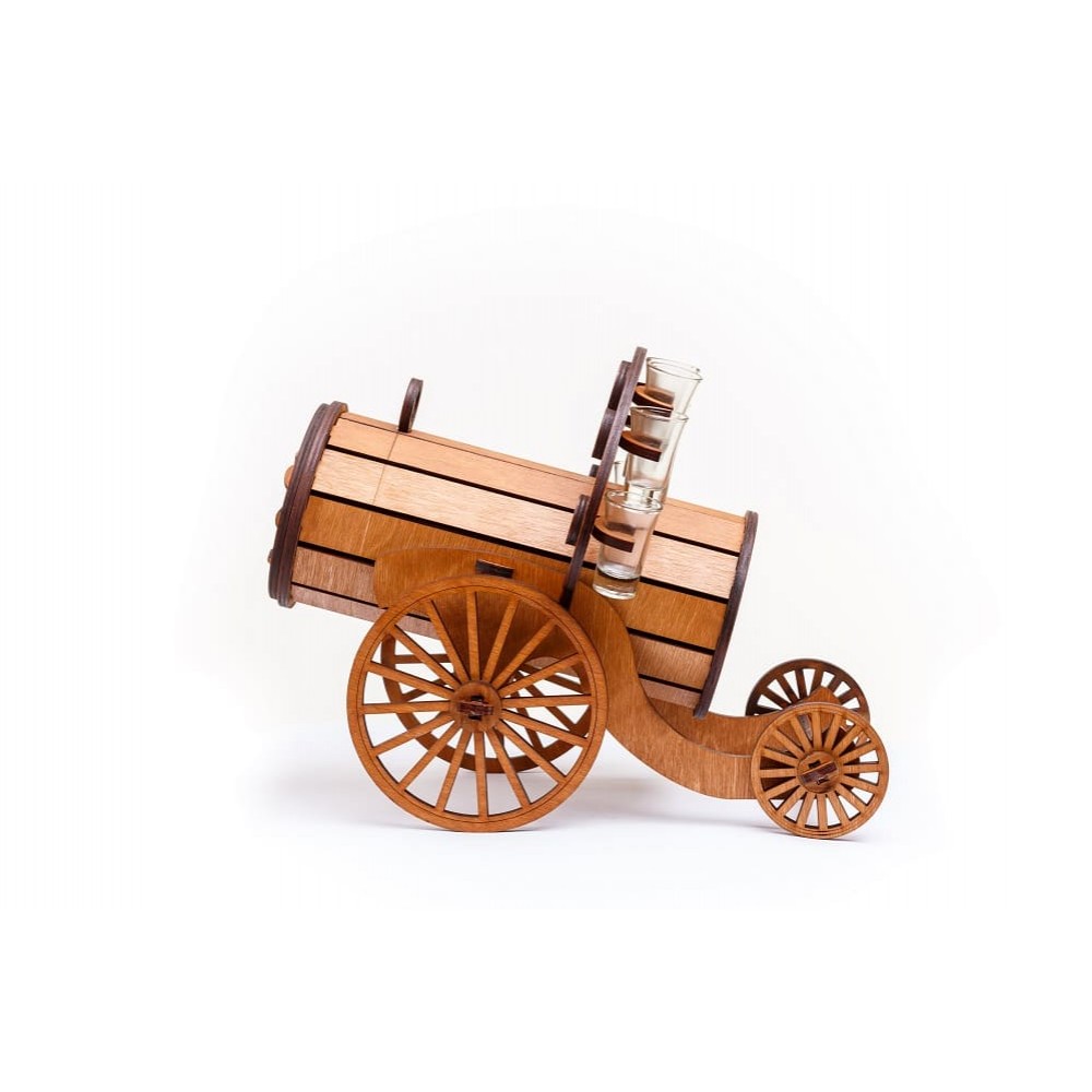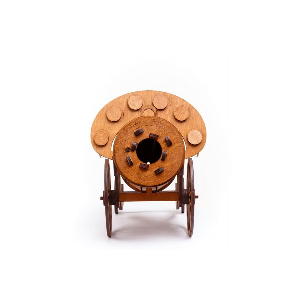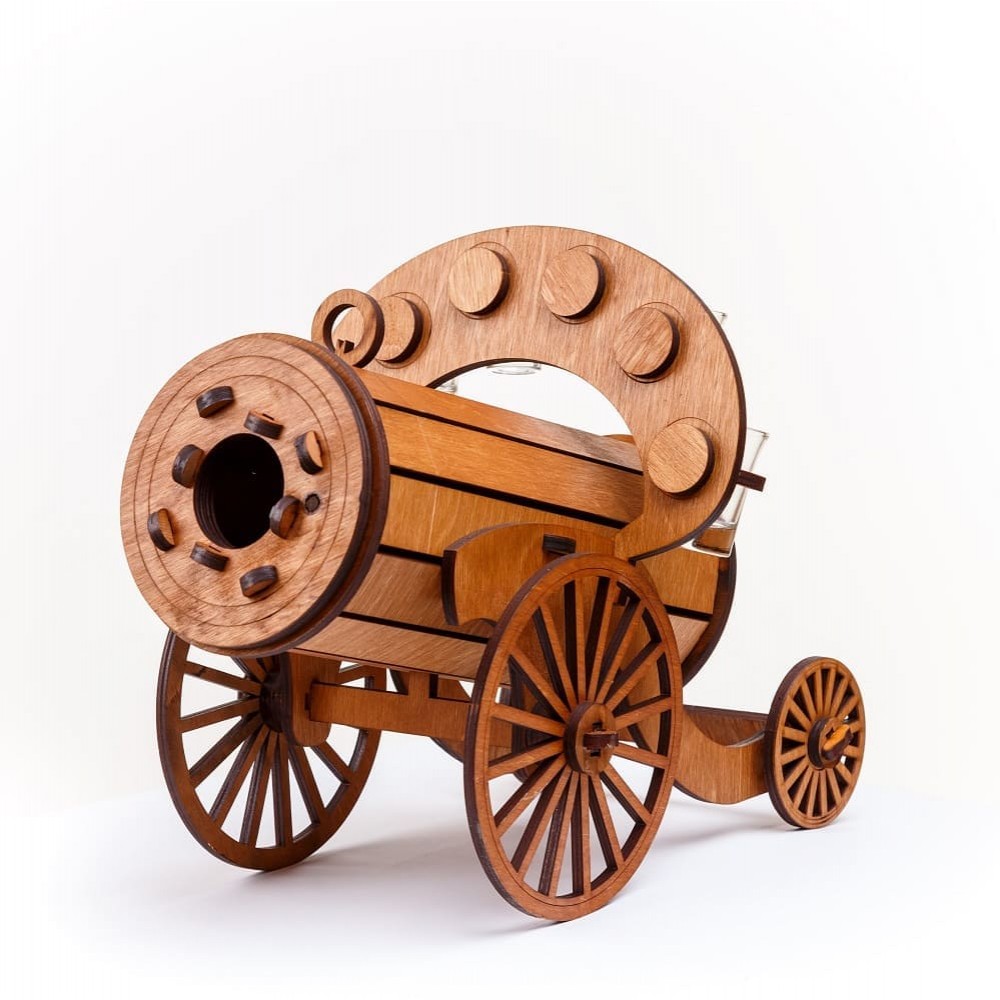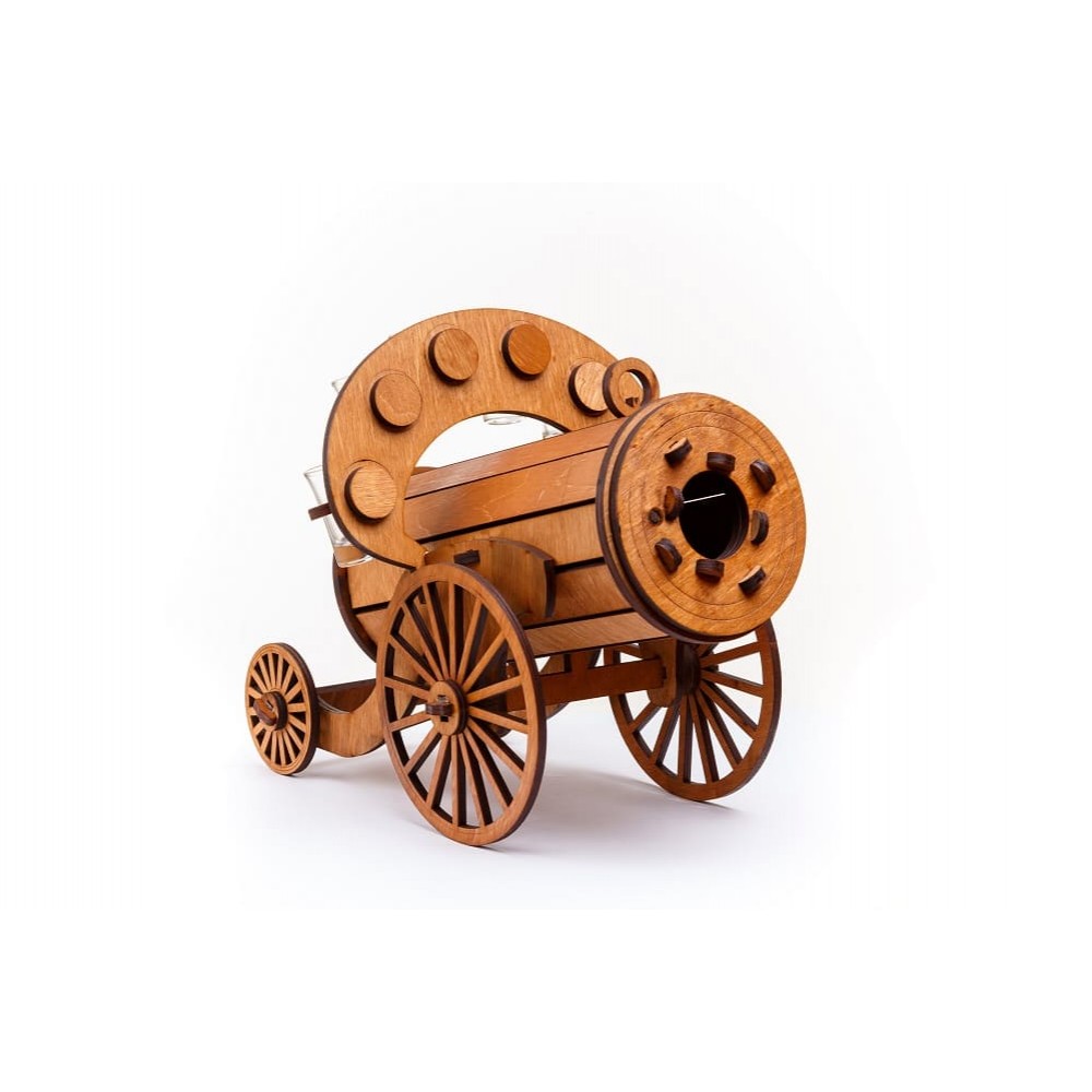 Минибар в виде пушки с подставкой под 6 рюмок. Идеально подойдет для вина или других напитков, которые нужно подавать еще до начала и дать им подышать под специальными уклонами. полочку.