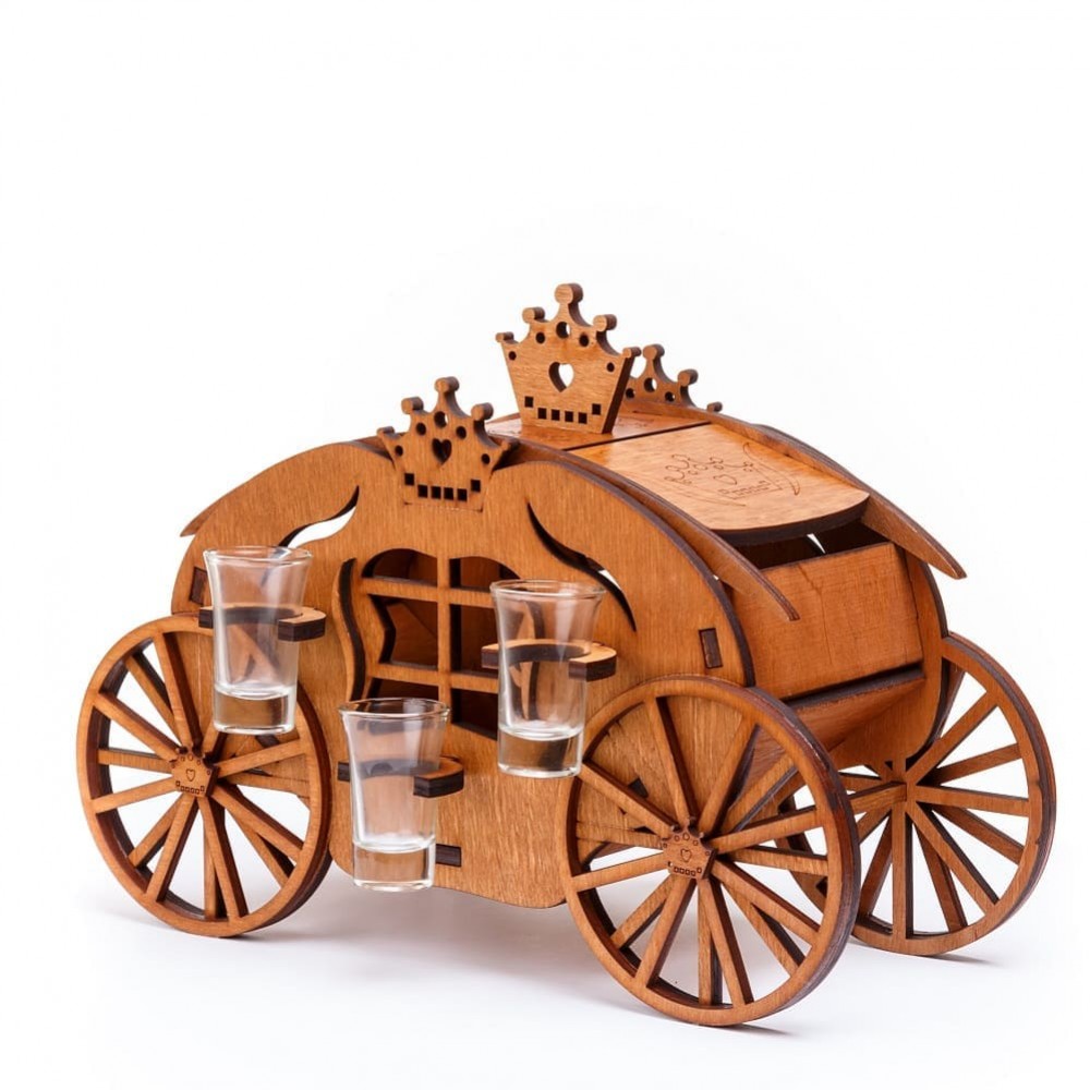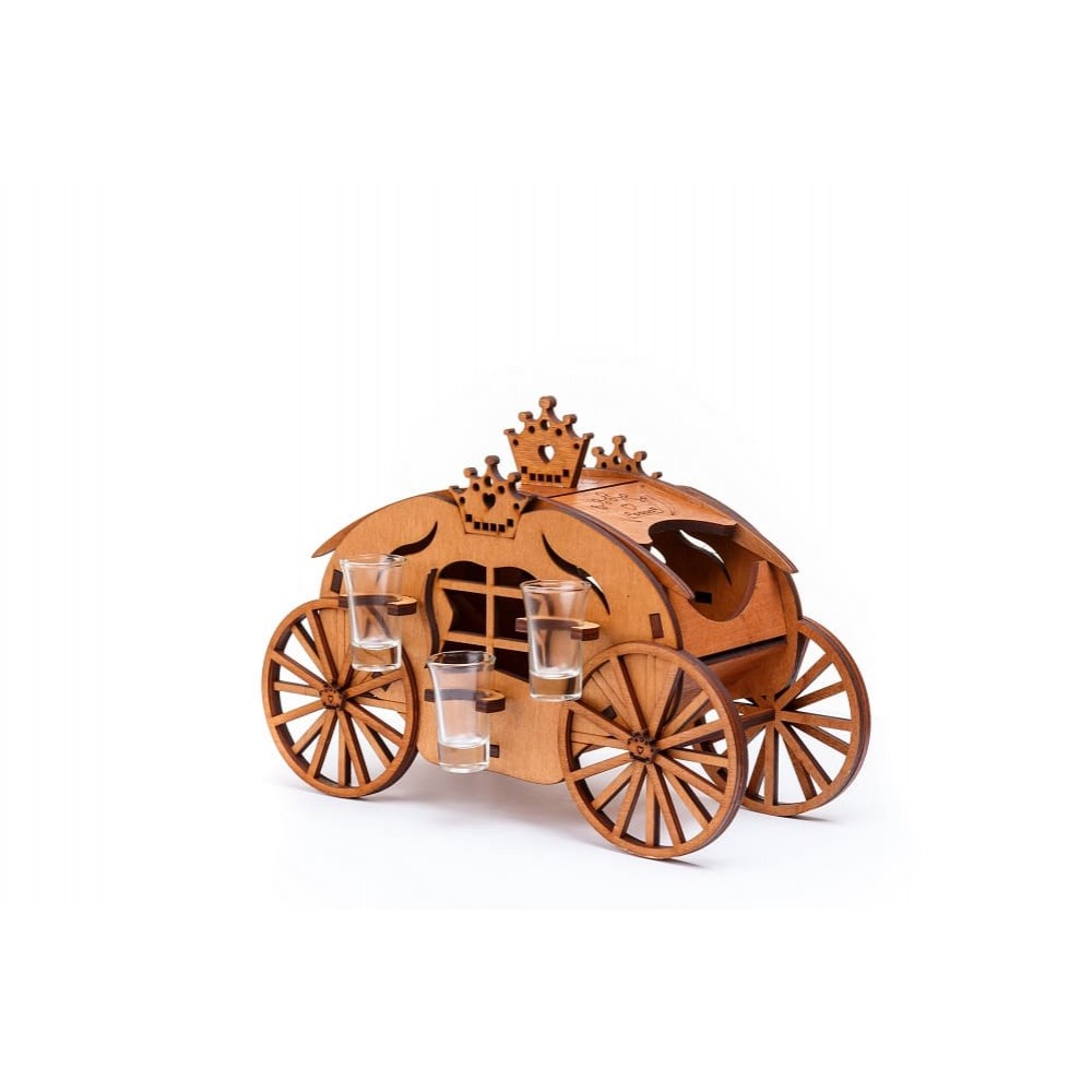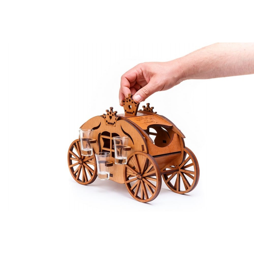 Такой карете позавидует любая императрица. Ведь изысканное исполнение и ее практичность превращает такой минибар в украшение любого декора и стола. Идет в наборе с 6 рюмками, которые можно прикрепить к ящику.