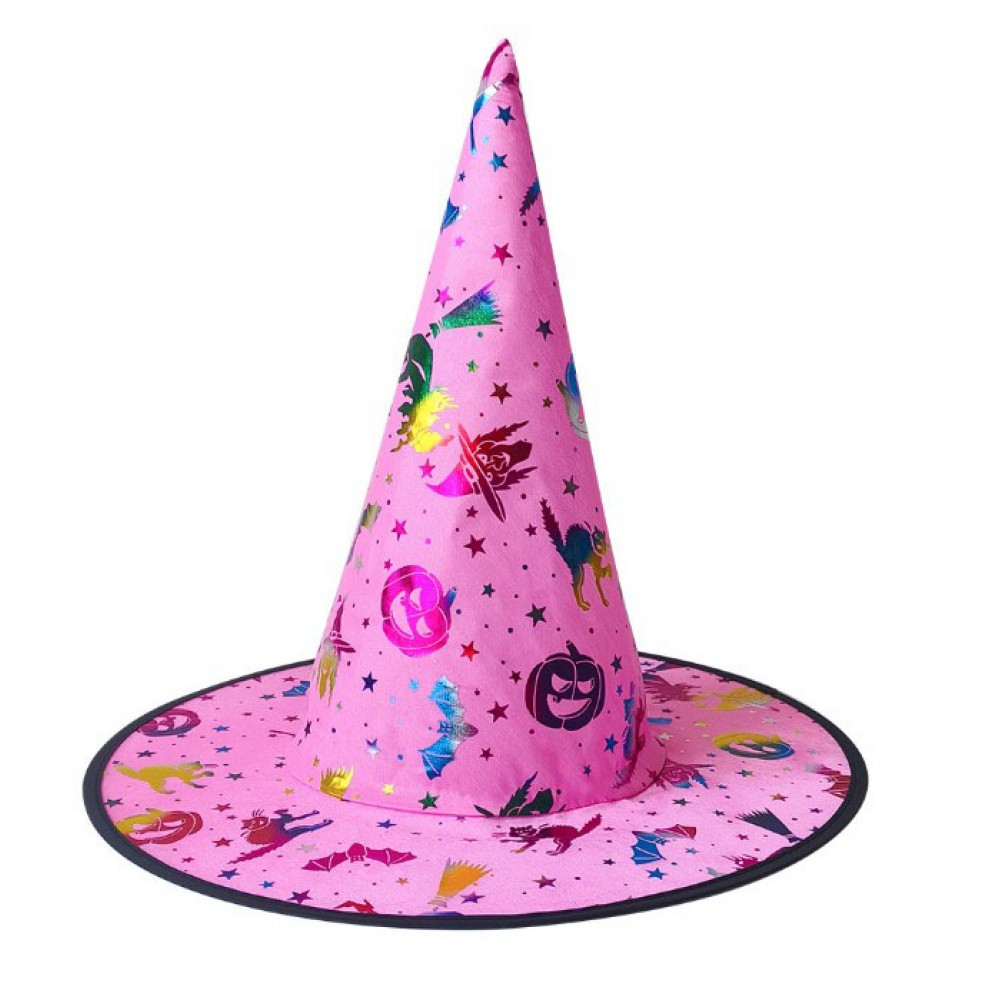 Шапка ведьмы розовая с голографическим принтом — для Хэллоуина