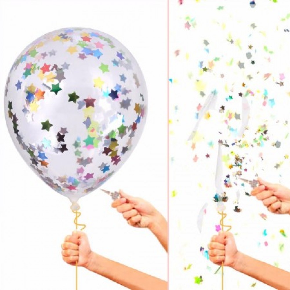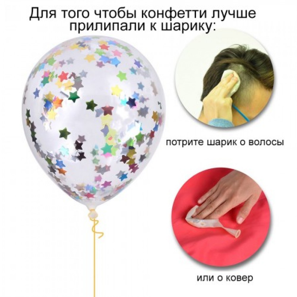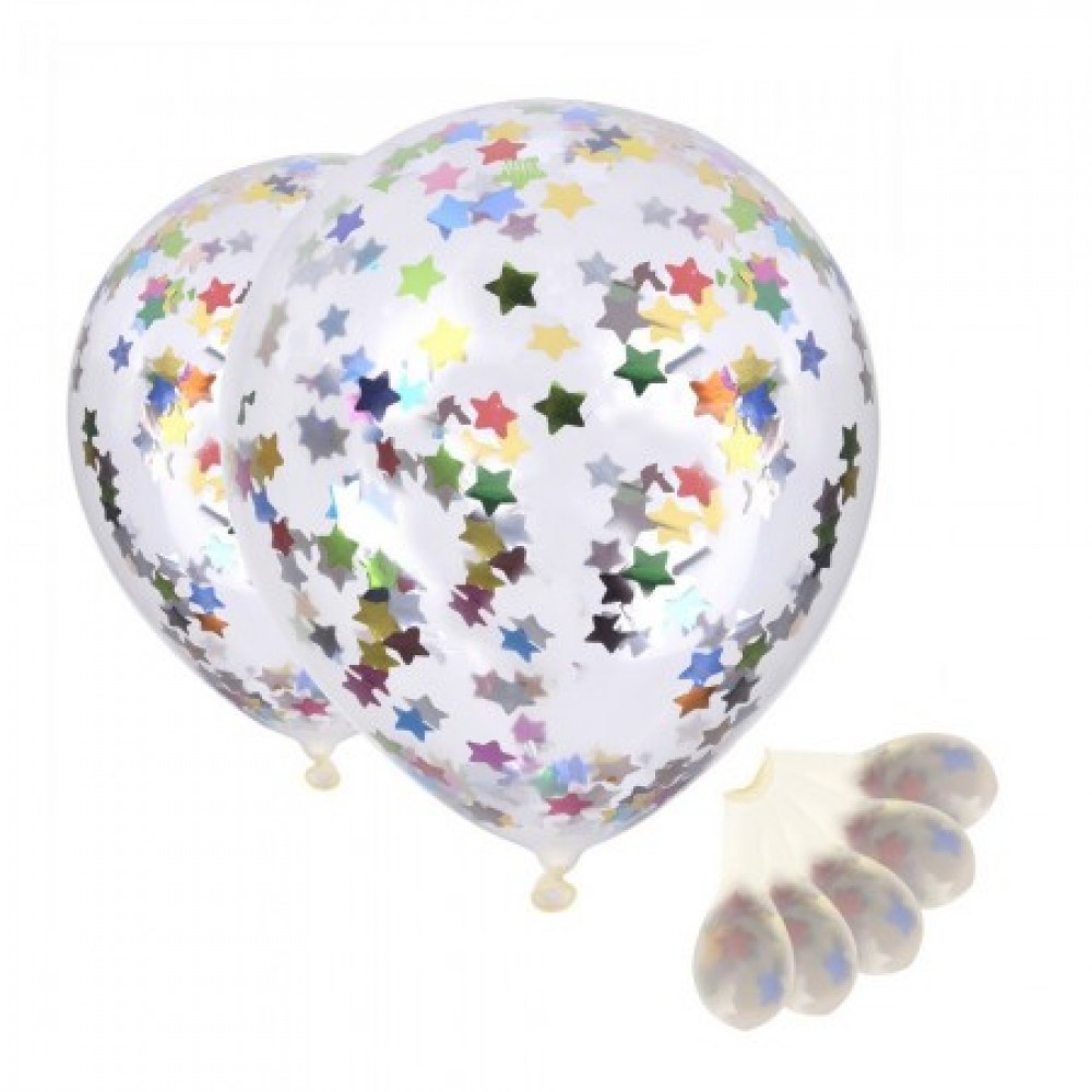 Шар 12 дюймов с конфетти звездами (уп. 5шт)