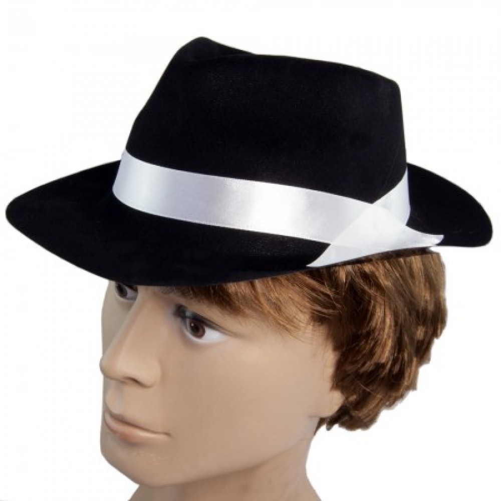 Шляпа мужская Мафия флок (черный с белой лентой)