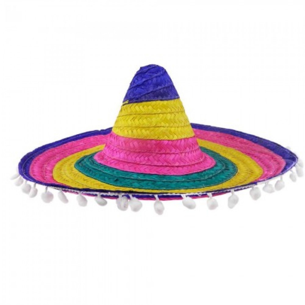 Шляпа Сомбреро 55см цветная с кисточками