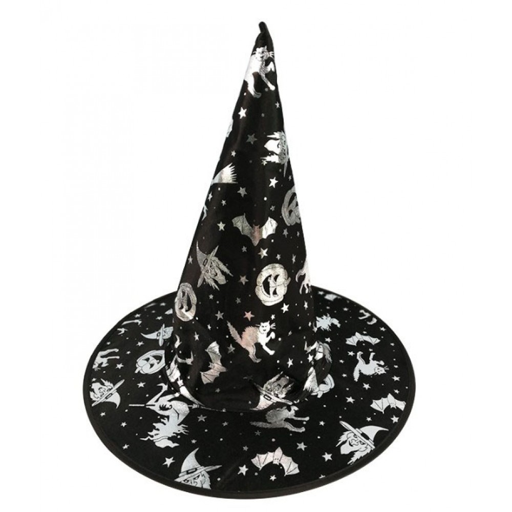 Шляпа ведьмы чёрная с серебряным тиснением 35×38 см, универсальный размер
