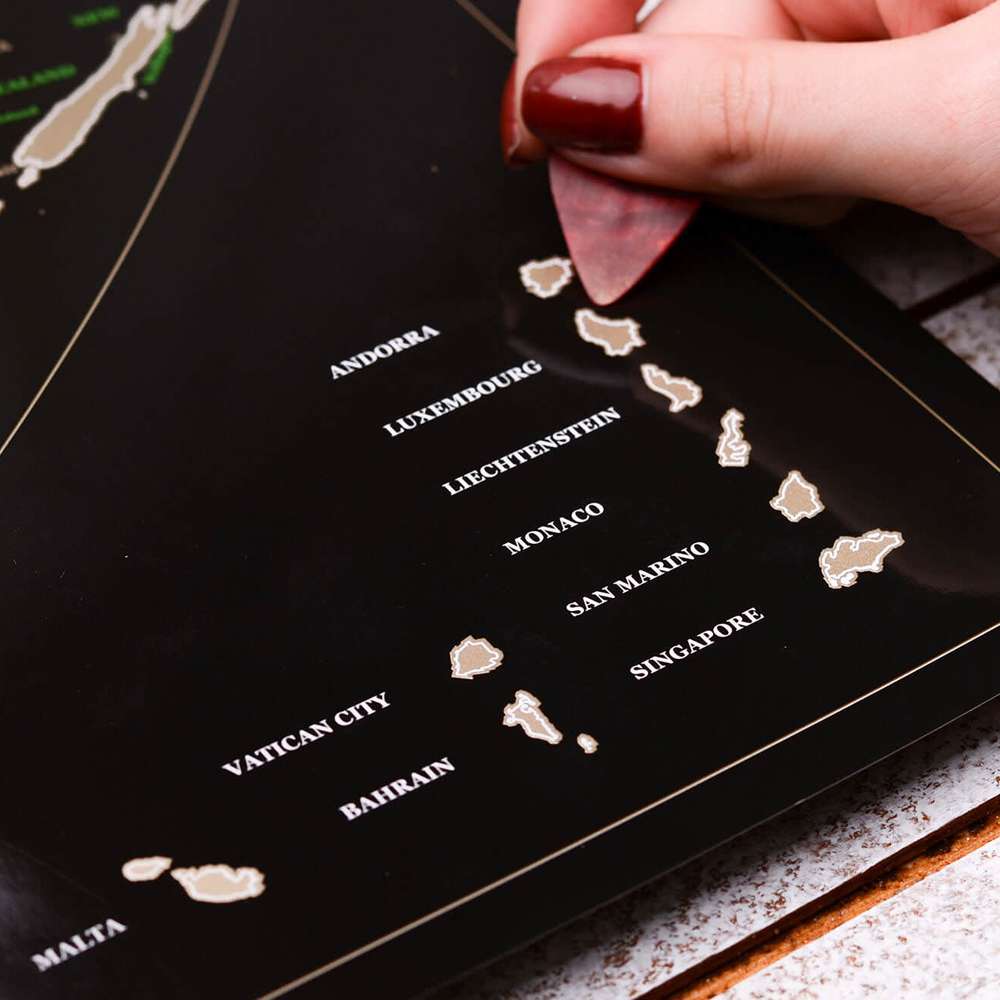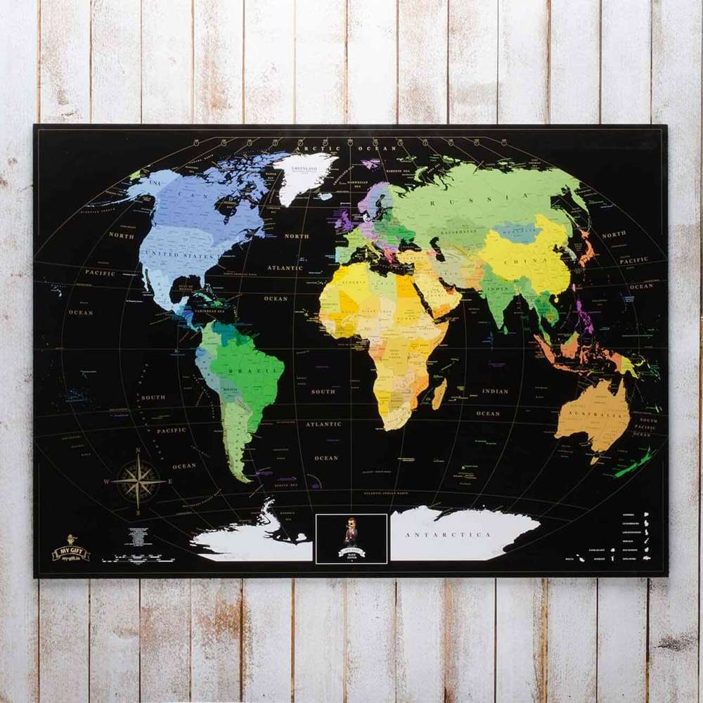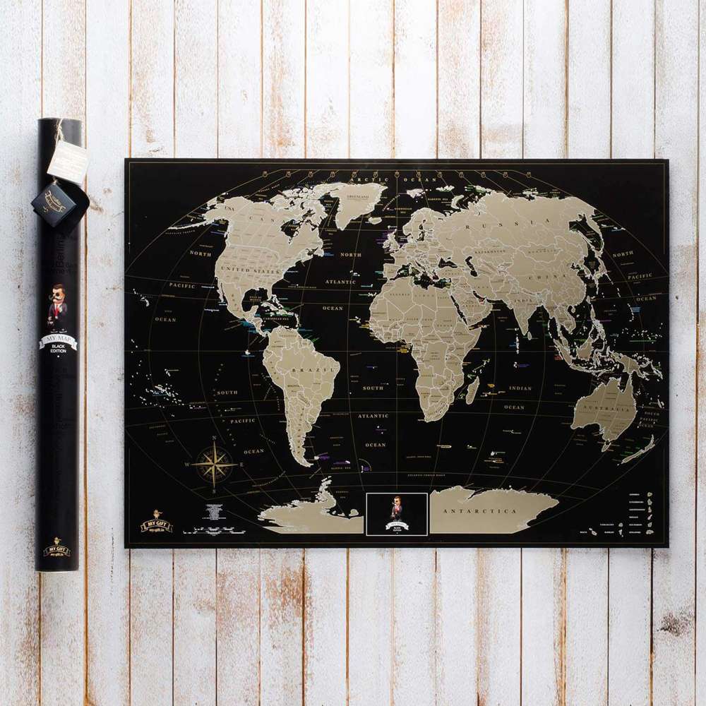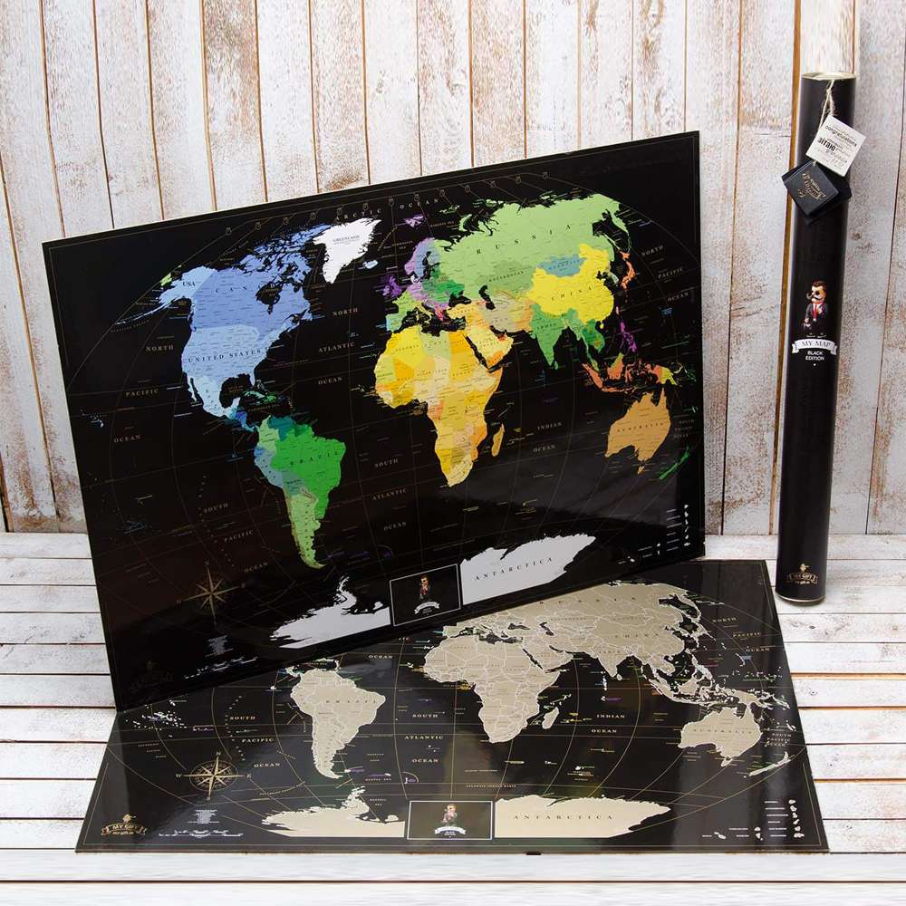 Скретч карты стали очень популярны в наше время. У нас появилась совершенно новая и оригинальная скретч карта мира Black edition, которую Вы можете купить у нас в интернет-магазине Подарок-ТУТ. Вы заметили, что черный цвет в дизайне стал очень популярный? Вот и мы сделали нашу карту именно такой. Сочетание таких цветов на ней, все страны представлены в своем цвете, именно это делает ее такой оригинальной. Мы сделали для Вас полноценную карту мира, со всеми островками и конечно же, большим количеством городов. В наборе есть булавочки, которыми Вы сможете отмечать те места, которые Вы посетили, ведь карта очень подробная. Также в наборе идет черный тубус, также Вас ждет еще много различный сюрпризов. С такой картой, Ваше желание к путешествиям станет еще более, и Вы сможете всем рассказать и даже показать места в которых Вы были. Наша карта – это залог невероятных эмоций, и ежедневных открытий, для всех кто получит ее.