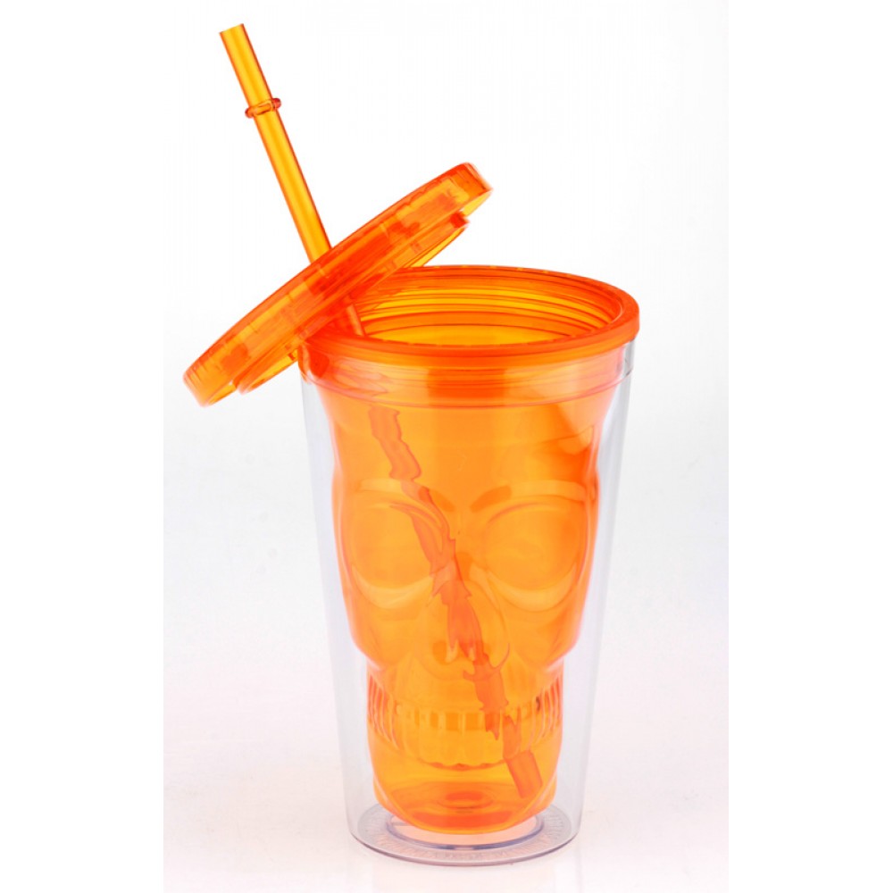 Оригинальный стакан для холодных и горячих напитков в виде 3D черепа. В комплекте многоразовая пластиковая трубочка для напитков