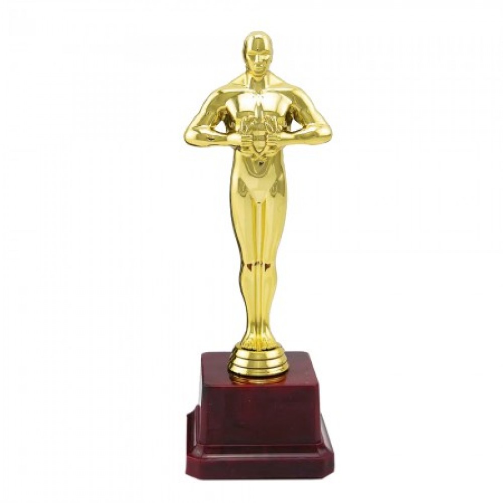 Фигурка Оскар подарочный 19см. восхитительный и необычный презент. Подарочная фигурка сделана в виде силуэта человека с лавровым венком в руках, из пластика с покрытием под золото на стойкой подставке, такой подарок станет прекрасным интерьерным украшением и запоминающимся подарком. Фигурка упаковывается в персональный подарочный тубус из прозрачного поликарбоната.Уникальная упаковка разработана компанией Подарок-тут.