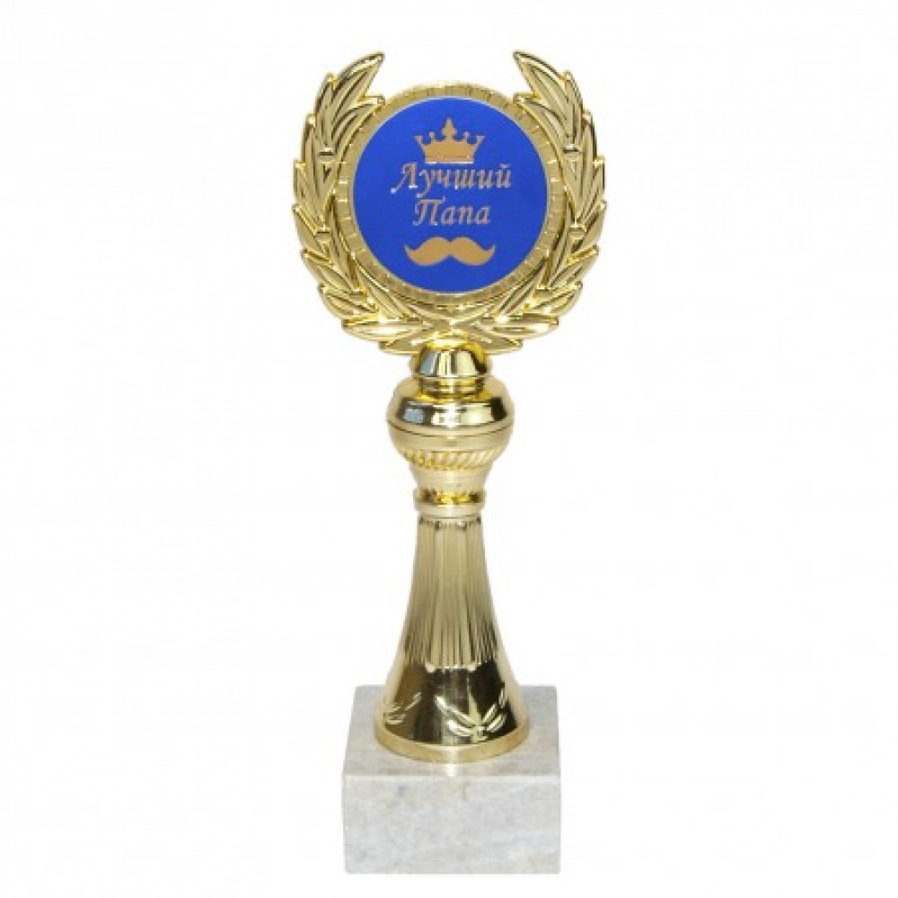 Фигурка 57229Т Лучший отец Лавровый Венок - фигурка сделана из пластика благородного под цвет золота размером 19х8х4см на подставке из настоящего камня 6х6х3см. На фигурке размещается жетон из прессованного картона синего сочного цвета диаметром 5 см с золотой тисненой надписью Лучший отец. Прекрасная и необычная награда, которую можно презентовать Отцу на юбилей, на День рождение или же просто в качестве подарка вместе с каким-нибудь подарком. Подарок символичен и оригинален, говорящий как дорог для Вас поздравляемый человек! Фигурка упаковывается в персональный подарочный тубус из прозрачного поликарбоната. Уникальная упаковка разработана компанией Подарок-тут. Подарочную фигурку Лучший отец можно дополнить табличкой под цвет золота для пьедестала Кубков и Фигурок, с нанесением индивидуального текста поздравления или пожеланий (текст наносится черным цветом). А также в online-магазине Подарок-тут! Вы можете приобрести необычные награды и призы в наличии и под заказ. Хороший выбор кубков, медалей и наградных фигурок для любого повода.Дополнительная информация: