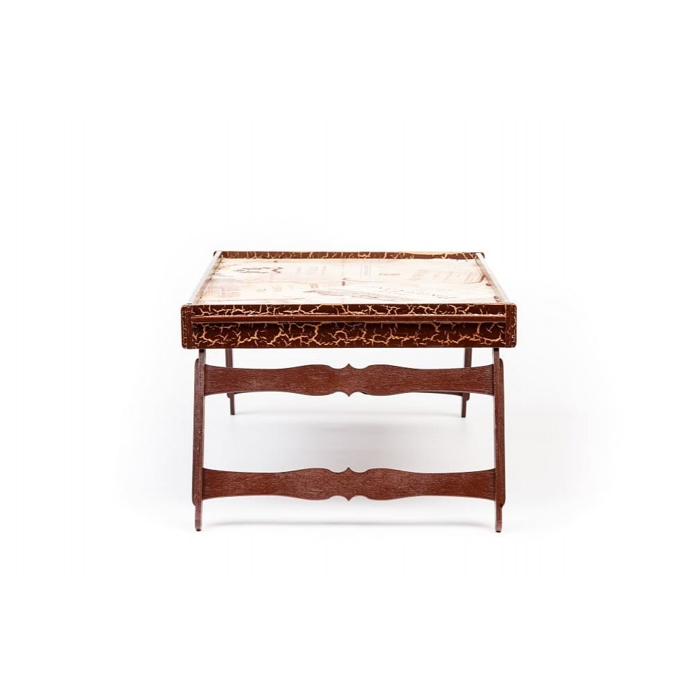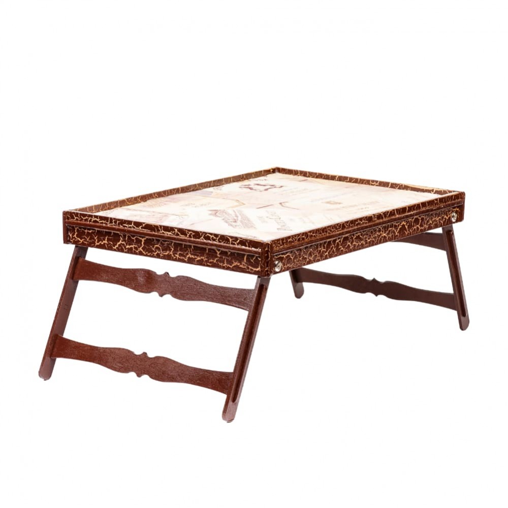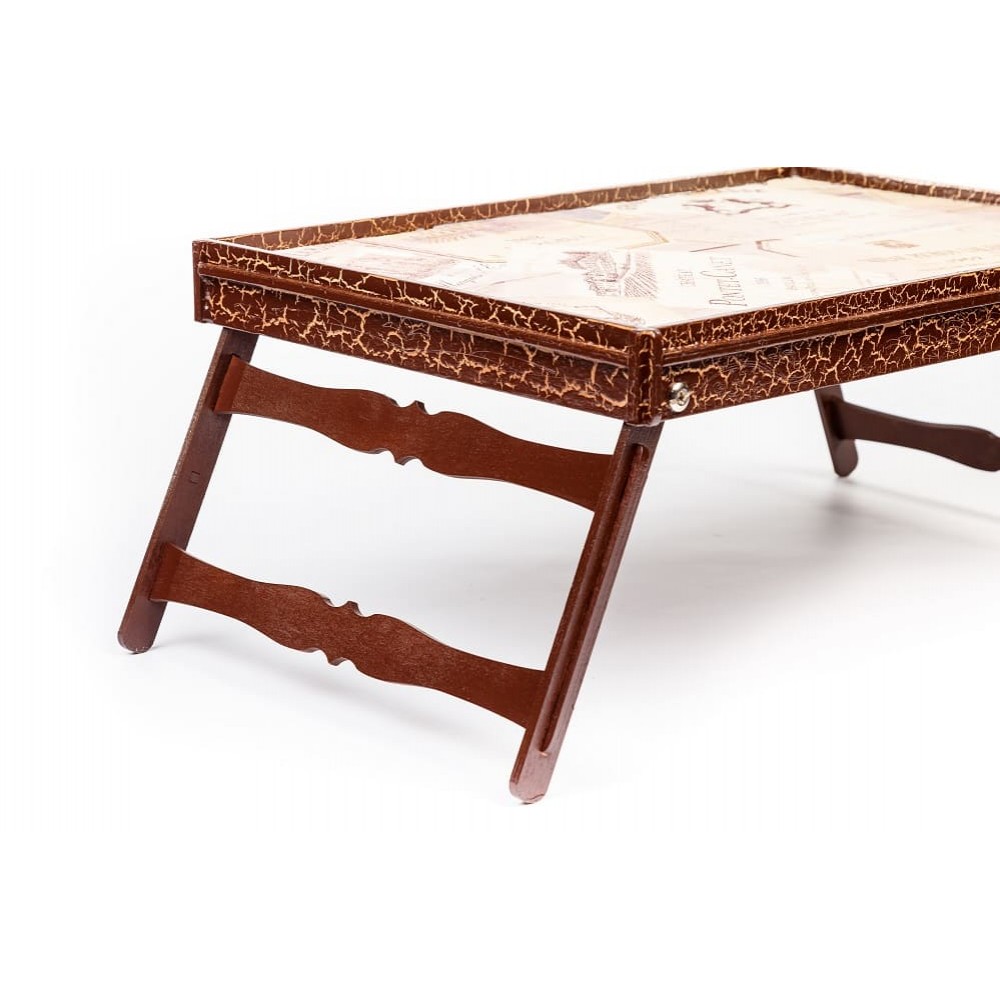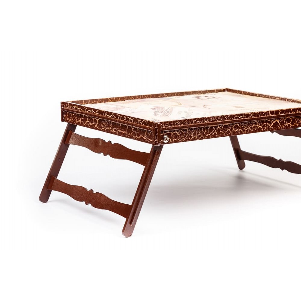 Особлива річ з безліччю функціональних можливостей: столик для сніданків, підставка для ноутбука, робоча поверхня. Відмінно підійде любителям інтернет серфінгу, або при перегляді фільмів у ліжку. Виготовлено з шаруватої деревини темного кольору.