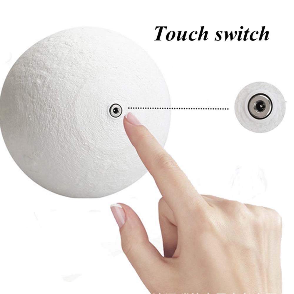Светильник "луна magic 3d moon light" способен светиться в трех различных цветах: холодном белом, теплом белом и оранжевом, что позволяет создавать разнообразные атмосферы в помещении. Яркость освещения регулируется длительным нажатием на сенсорное металлическое кольцо, расположенное в нижней части светильника. Для изменения цвета свечения достаточно коснуться этого кольца или слегка ударить по светильнику.