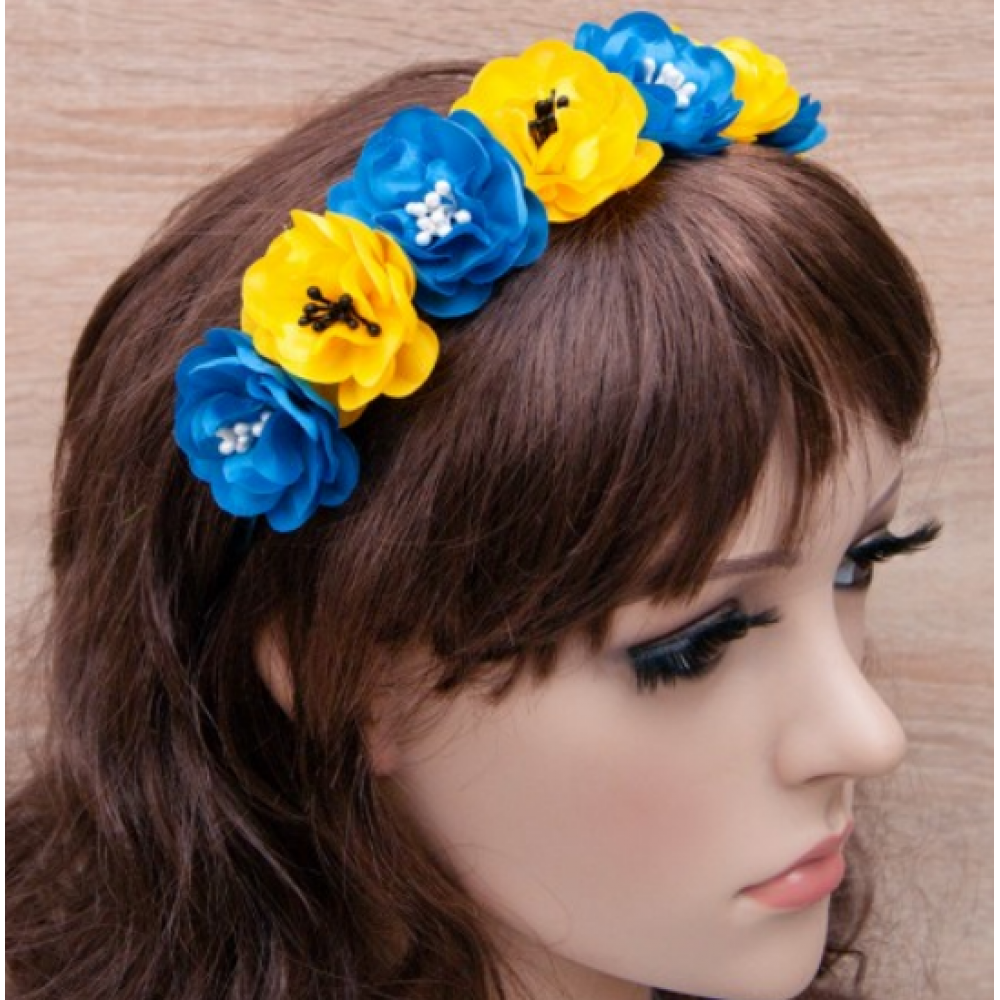 Украинский веночек на ободке 12200 с тычинками (синий с желтым)