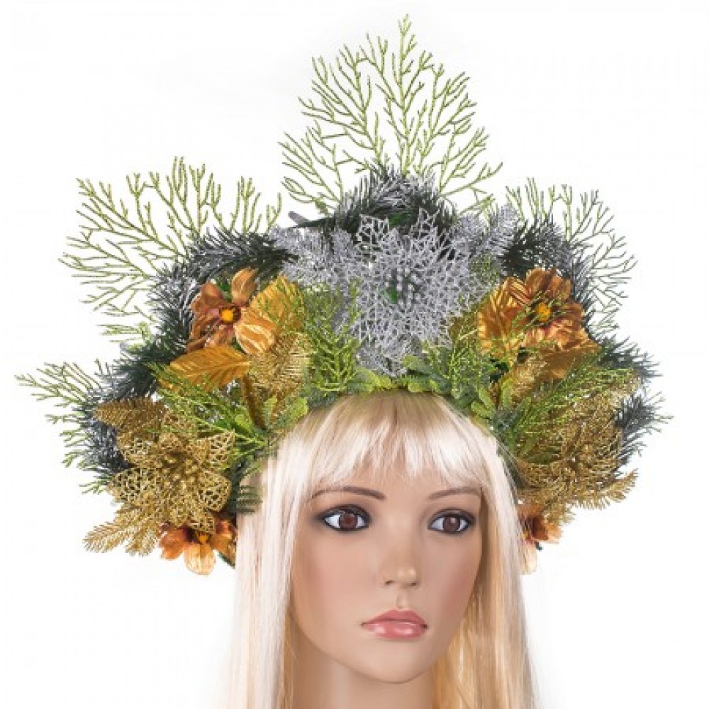 Украинский венок кокошник Богумила 11032 сделан из искусственных листьев, травинок,