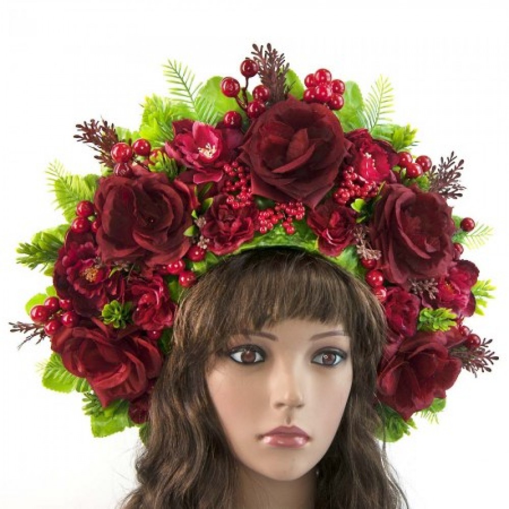 Украинский венок кокошник Богумила 11032 сделан из искусственных листьев, травинок,