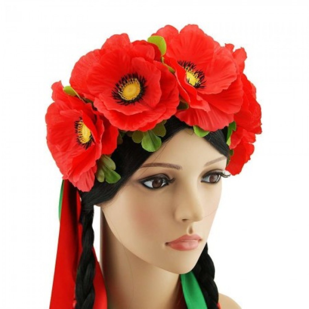 Украинский венок Цветана с маками и васильками 11236 выполнен из искусственных цветов маков, подсолн..