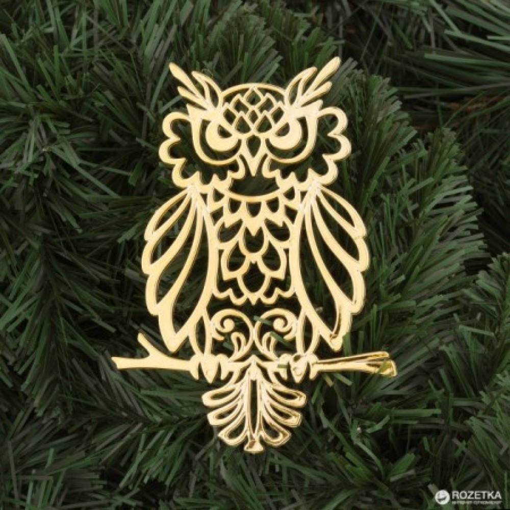 Украшение Сова пластик 12х9см (золото)