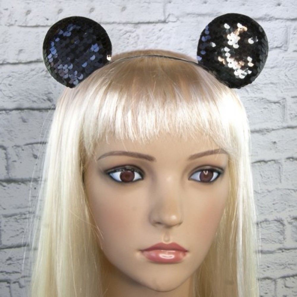 Ушки Микки Мауса с паетками черный – это атрибут сказочного героя – жителя волшебной страны Дисней-ленд . Кто не знает яркую парочку – Микки Мауса и его игривую подружку Минни? Специально для маленьких кокеток интернет-магазин Подарок-тут предлагает приобрести оригинальный подарок для предстоящего карнавала – ушки, которые таинственным образом способны быстро поднять настроение. Ушки прочно зафиксированы на удобном упругом ободке для волос, они не причинят дискомфорта крохе и позволят предаться празднику в полной мере. Но купить оригинальный аксессуар можно и по поводу взрослой вечеринки – мультяшные герои – желанные гости на любом празднике!Дополнительная информация: